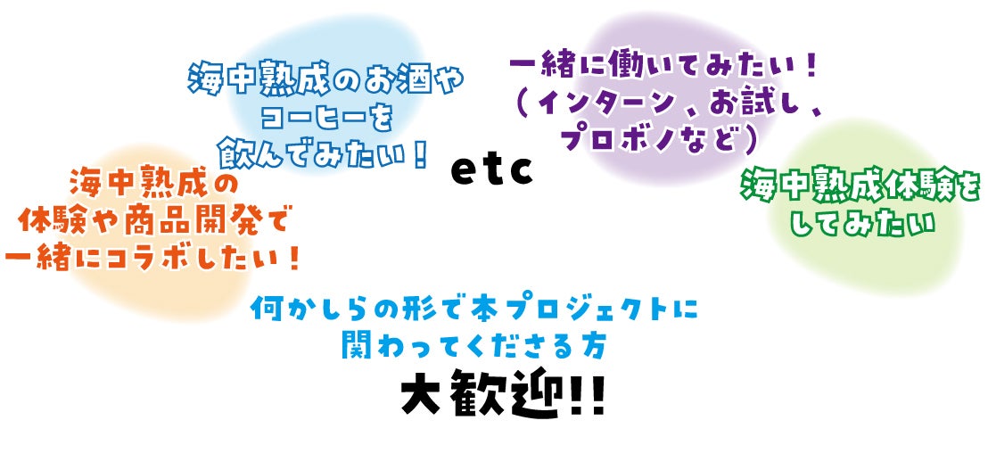 熟成したら面白そうな商品をお持ちの方や、観光、商品流通など面白い考えをお持ちの方がいらっしゃいましたら、ご連絡お待ちしております。
