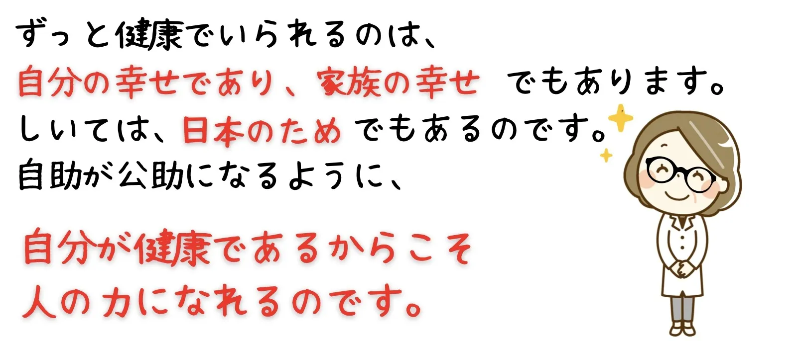 私の考える「健康づくり」は、どんな方にも大切なことであり、幸せな人生の土台になるものです。