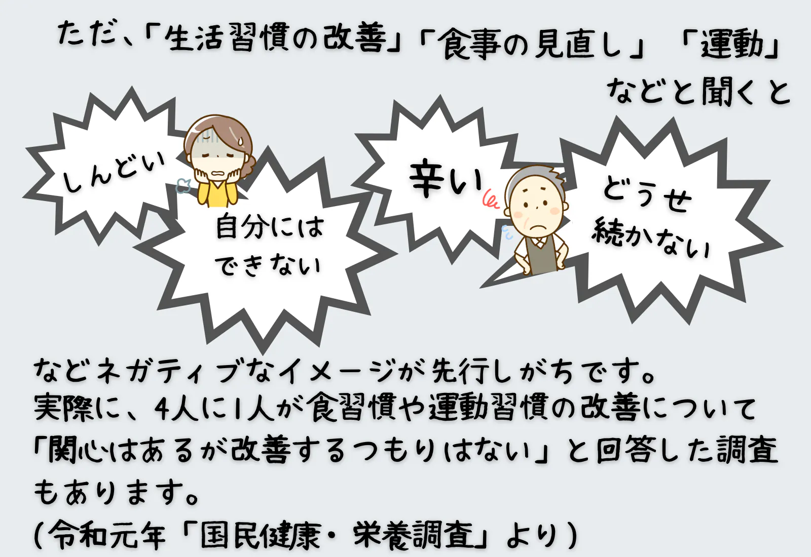 そのため、私は「痩せること」ではなく「健康であること」を目的にして、継続的に生活習慣の改善に取り組める場を提供したいと考えています。