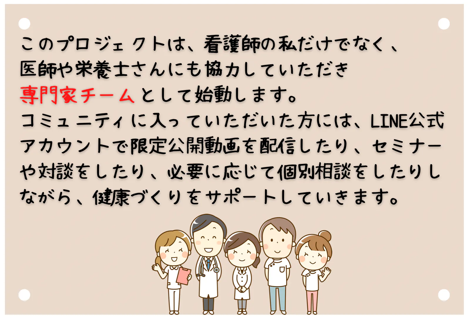 長年、看護師として多くの患者様や地域の方々の健康づくりのサポートをしてきた一方で、自分自身の健康はついつい後回しになっていました。
