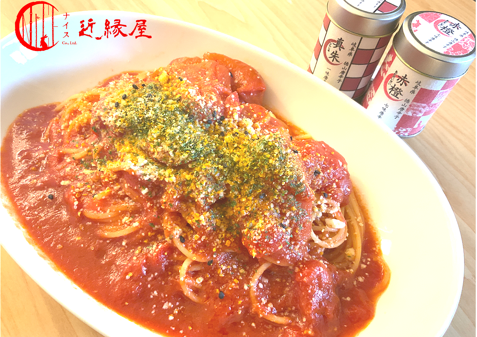 料理に刺激を!いつものトマトソースにアレンジを加えるべく、仕上げに七味唐辛子赤橙を振りかけました。七味唐辛子赤橙にも、酸味が入っていいるので、トマトソースとの相性もバッチリです。いつもと風味が変わって、食欲を刺激します。フォークでくるくるっとパスタを巻き取っては、口に頬ばむ。酸味と辛味が口の中に広がり、次の一口を用意するために手の動きが止まりません(笑)(更に辛さを求める方は、一味唐辛子真朱を追い掛けしてみて下さい。)作り方フライパンにオリーブオイル、にんにくを炒めます。フライパンにホールトマト缶を入れて煮詰めます。湯がいたパスタをフライパンに入れて絡めます。そして盛り付け。振りかけたのは、粉チーズ・パセリ・七味唐辛子赤橙です!好みで振りかけてお召し上がりください。