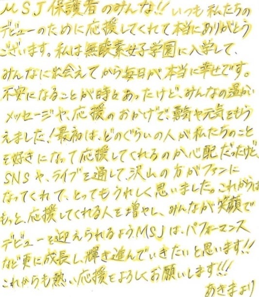 2022/02/25 09:00どうも、あらいですクラウドファンディングご支援いただき本当にありがとうございます!!!この1年間いろんなことがあったけど、みんなが応援してくれているからつらいことも乗り越えてこれました保護者の方からの力ってほんとに偉大だなと感じています今回のワンマンライブ、いろんなことに初挑戦させていただいてます初めてのことを披露するって不安ではあるけど、みんなで力を合わせて頑張ってきたのでそれを自信にかえて、この1年間の集大成を見せられればいいな!当日保護者のみんなに恩返しできるように、そして楽しんでもらえるステージにします(๑•̀ㅁ•́๑)✧みんなで笑ってデビューむかえるぞ!本当にたくさんのご支援ありがとうございました!!!あらいMSJのさらんです!改めて、クラウドファンディングにご支援してくれている皆んな本当にありがとうございます! ワンマンライブに向けて練習など、してきて、皆んなからの応援メッセージとかクラウドファンディングにご支援してくれる事とか、本当に嬉しくて、頑張って練習している甲斐があるな、と思いました!皆んなからのメッセージとか、コメントがいつも良いコメントが沢山あって、練習頑張って!とか、応援してるよ!というメッセージが凄く嬉しいくて、頑張れる糧になっています!リターンも、楽しんでもらえるよう頑張るので、是非参加よろしくお願いします! 動員100名達成できるように、今日いっぱいまで、頑張りたいと思います!さらんMSJ保護者のみなさん!いつもMSJの活動を応援してくれて、そして私たちの保護者として支えてくれてほんとにありがとう!みんながいつもそばで全力で応援してくれているおかげで、毎日元気や勇気をもらってます!保護者のみんなと一緒にワンマンライブを迎えることがずっと前からの夢だったので、ついにその日を迎えられることができて感謝の気持ちでいっぱいです!ワンマンライブでは、今までの感謝の気持ちをダンスや歌にして恩返しできるよう、あきまパワーで頑張ります!そして、私たちと最高の思い出をつくろうね!ワンマンライブで会えることを楽しみに待ってます...♪あきま もっと見る