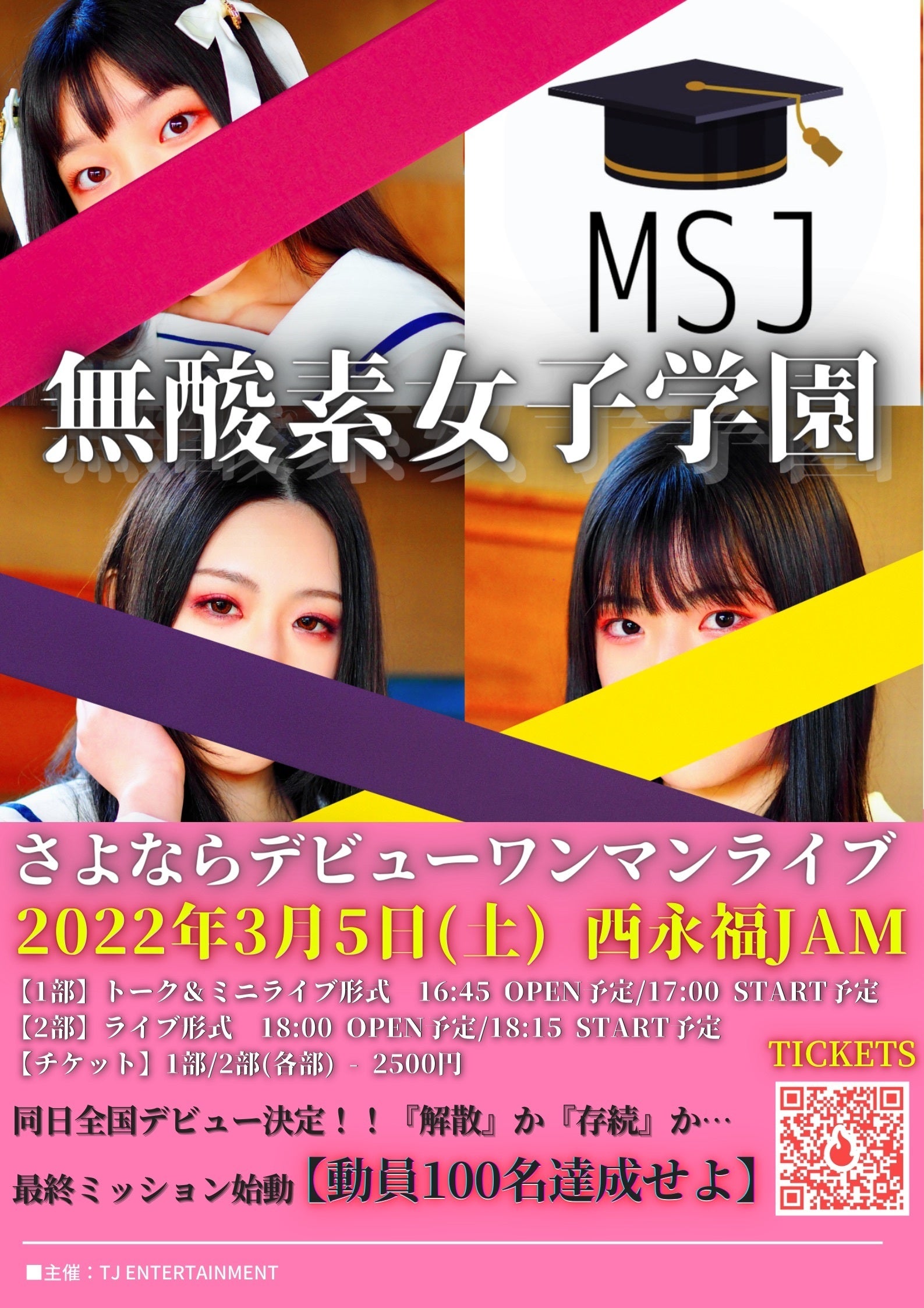 「さよならデビューワンマンライブ」で動員100名を達成し、無酸素女子学園を存続させたい!