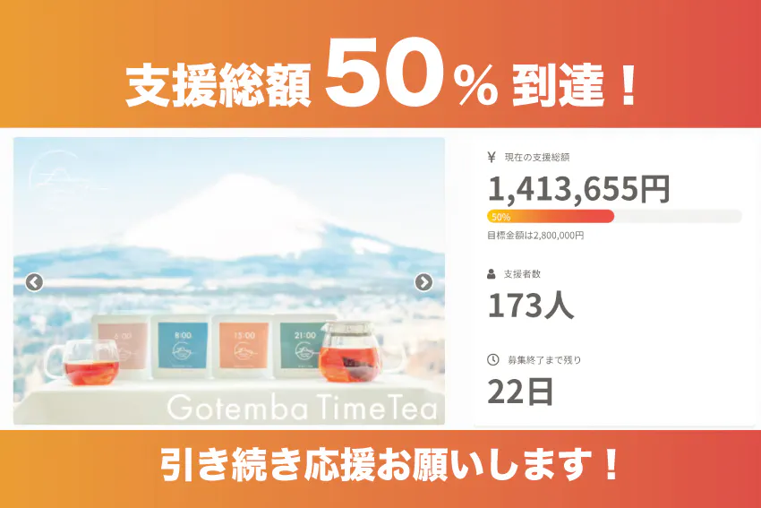 クラウドファンディング開始から16日目、支援総額50% 支援者数も173名に到達しました!