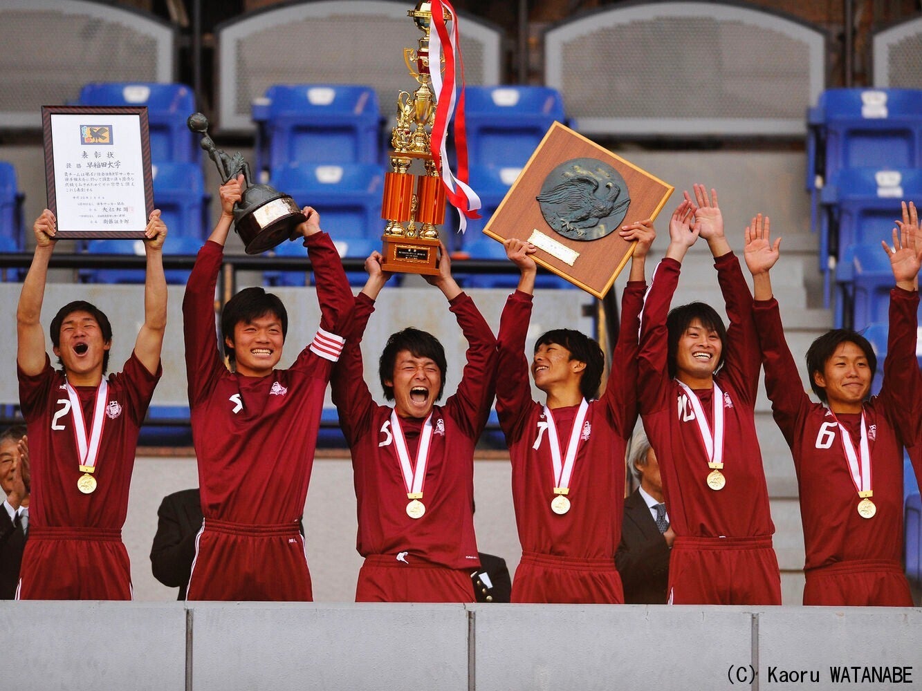 血栓の形成を防止する薬の投薬中は、接触プレーのあるサッカーは厳禁となりました。折も折、チームは全日本大学サッカー選手権を勝ち進み、新年早々に決勝を控えていたタイミング。「5分でもいいからピッチに立ちたい」。というささやかな望みも経たれ絶望の淵に追い込まれました。しかしチームは、「畑尾のために!」をスローガンとし、見事優勝。ピッチに立つこともできなかった僕をチームメイトは、表彰式に参加させてくれました。