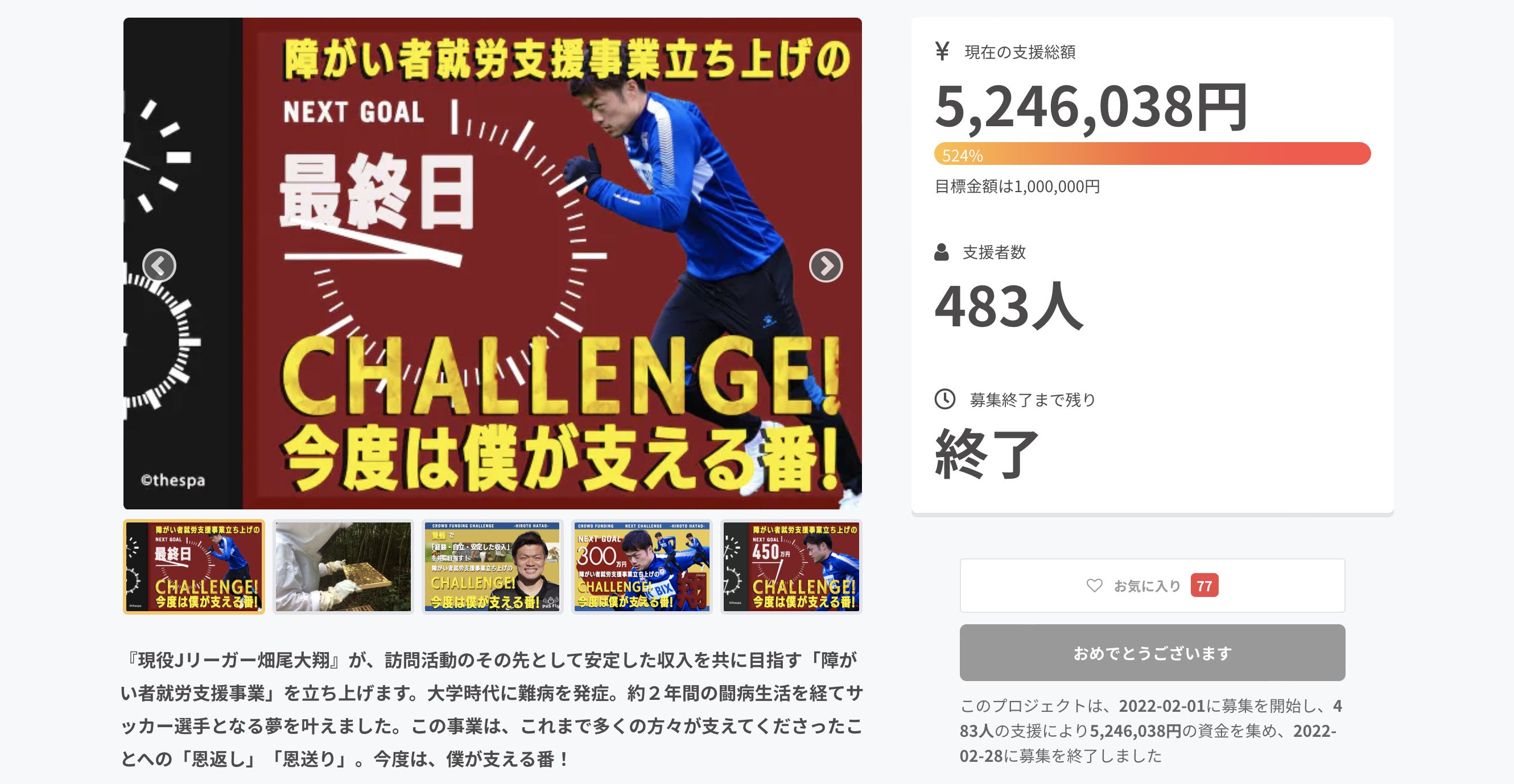 予想を遥かに上回る、¥5,246,038の支援を483人の皆様よりお預かりいたしました。