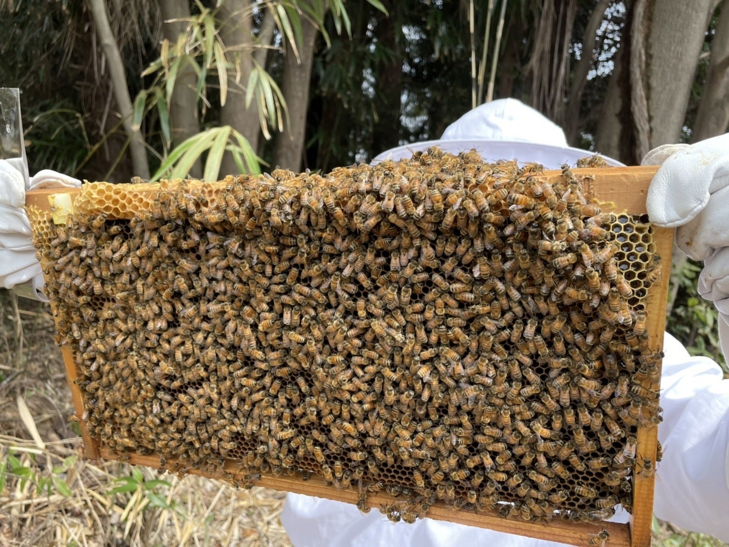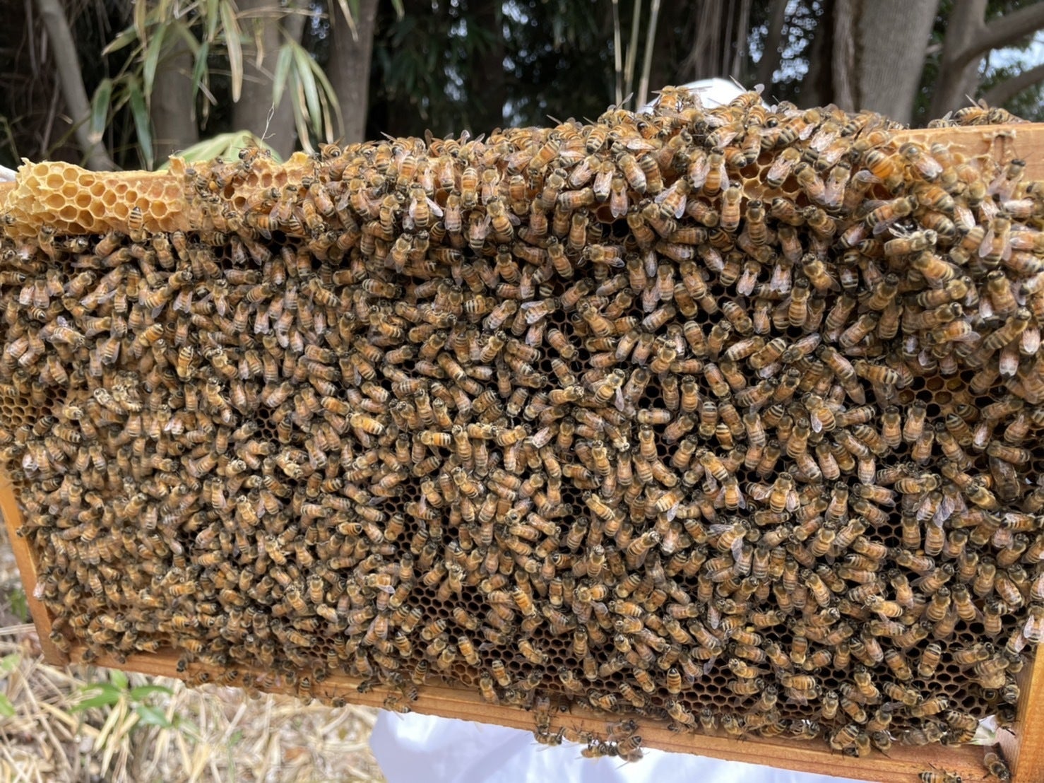 よくよくみると外側の巣枠には多くの蜜が…♡笑