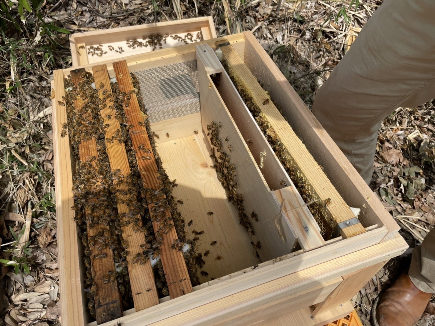 すると、だいぶ多くの蜂さんが巣箱にいました!