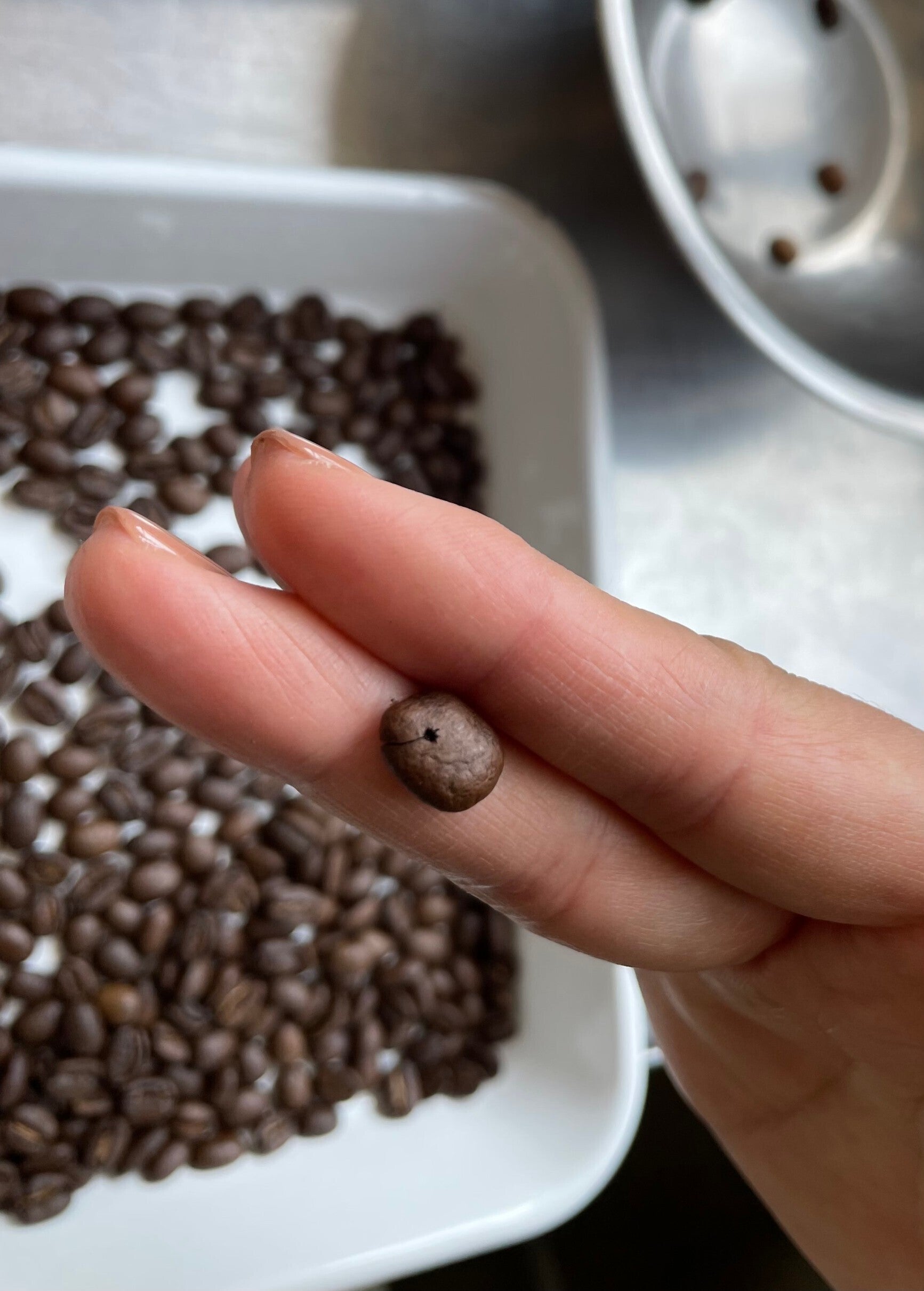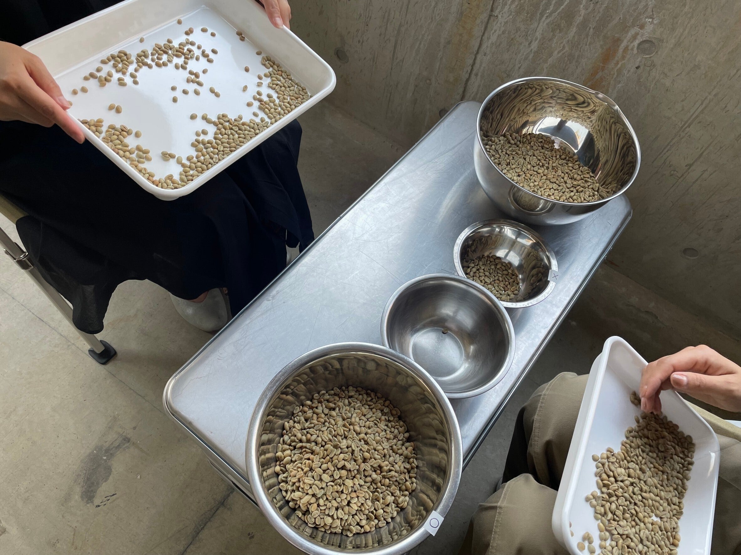 十分に冷ました後は、もう一度見落としていた穴が空いてる豆や焼きムラのある豆を除いて…