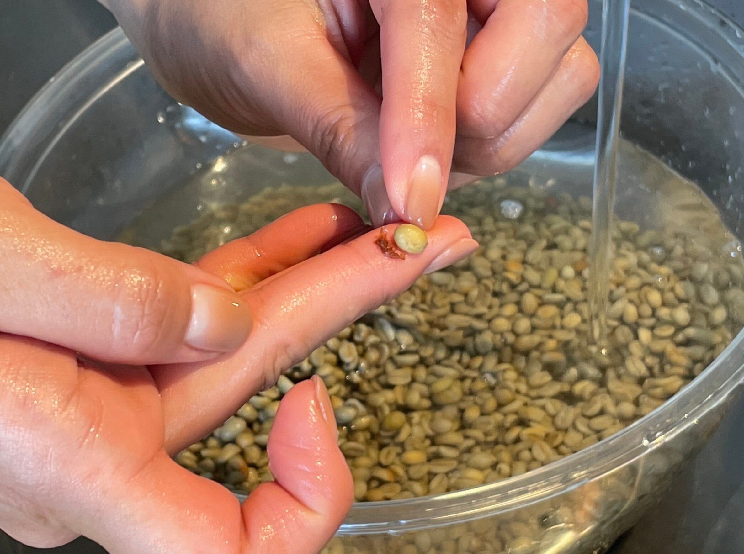 輸入の際に虫に食われたり、カビが生えたりする豆を除けて…