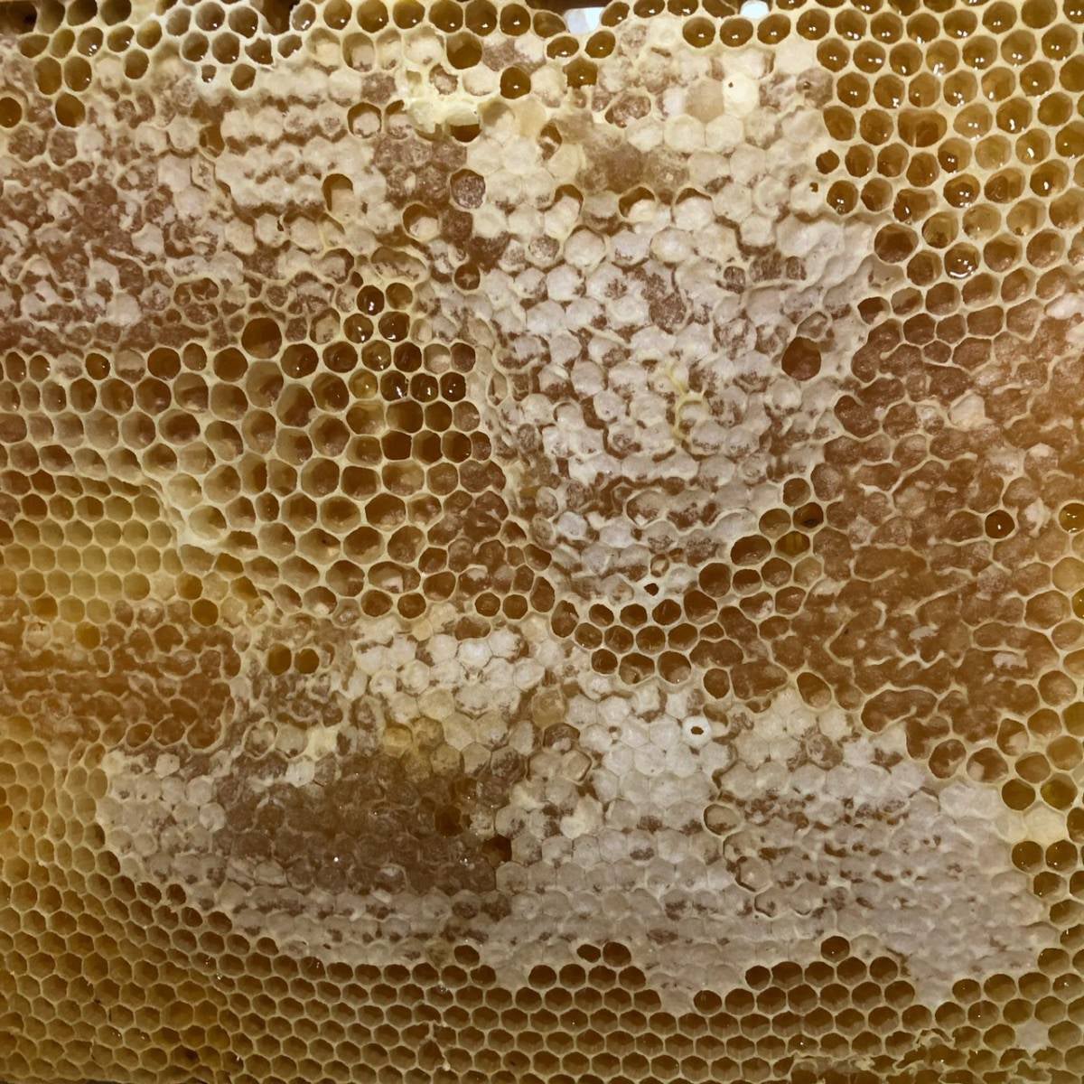 この上の白いのが蜜蓋(みつぶた)と言われる採蜜のチャンスタイムですよっ!と知らせてくれるサインです。