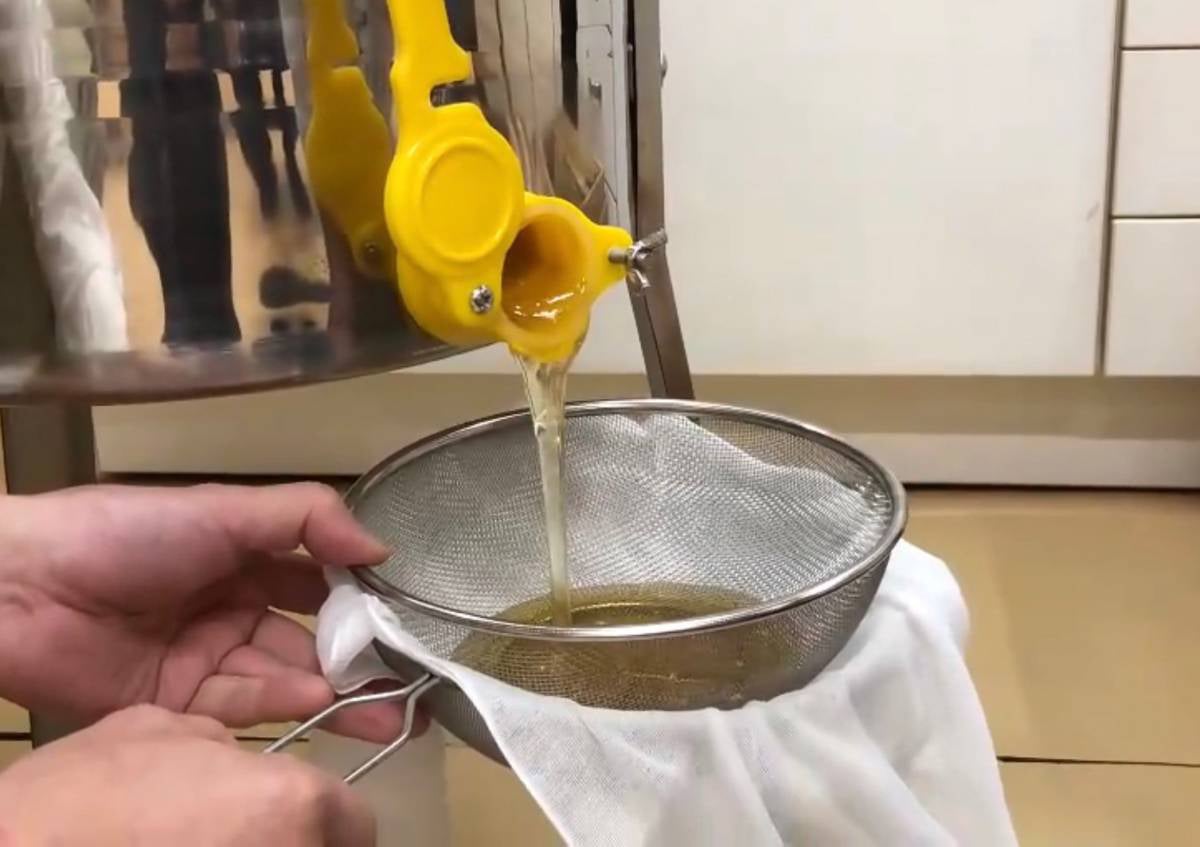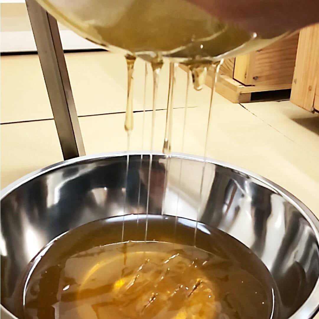 蜜蝋などが一緒に出てくるので最後に取り除くために濾して終了です!