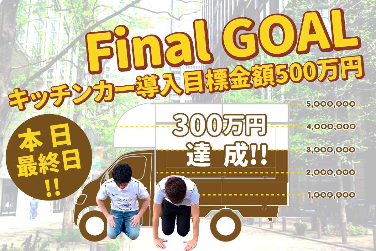 本日 300万円を達成し、キッチンカー導入目標金額である500万円まで残り200万円となりました。