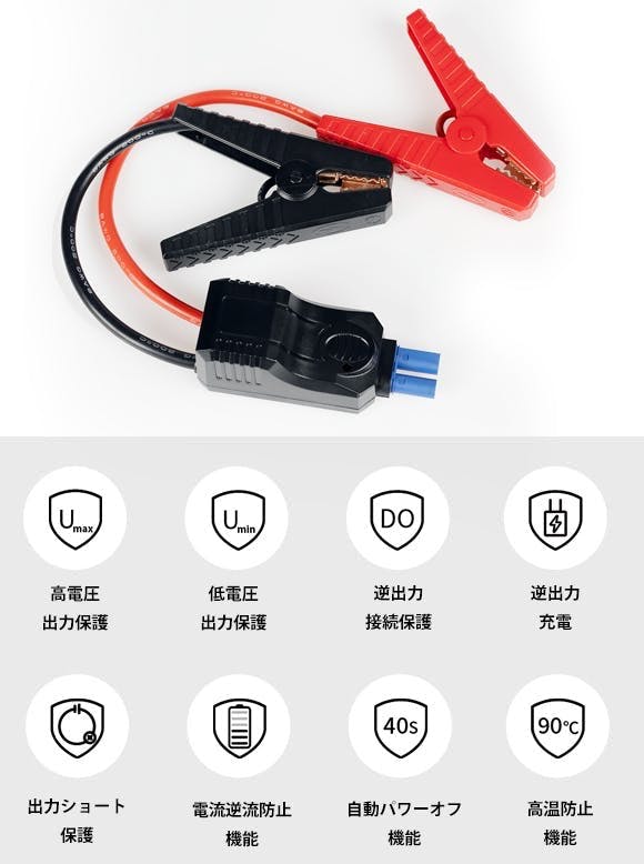瞬間最大出力600Aの大電流で、4.0Lまでのガソリンカー/2.0Lまでのディーゼルカーでジャンプスターターとしてご使用いただけます。