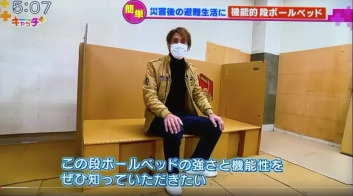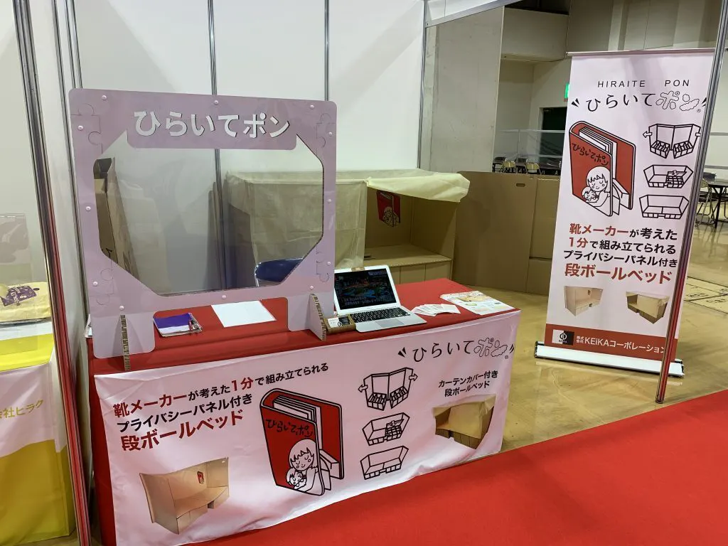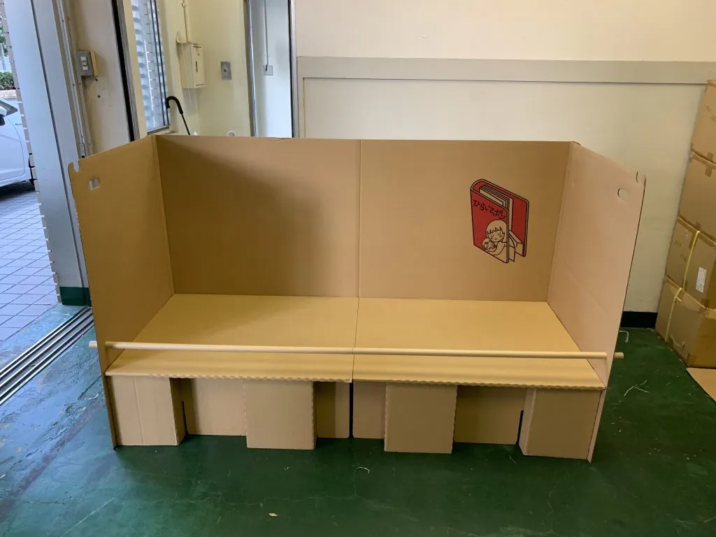 素材も段ボールなので軽く、たためるので置き場所に困らず、長期保管もできます。様々な災害避難所のお役に立てればと思っております。