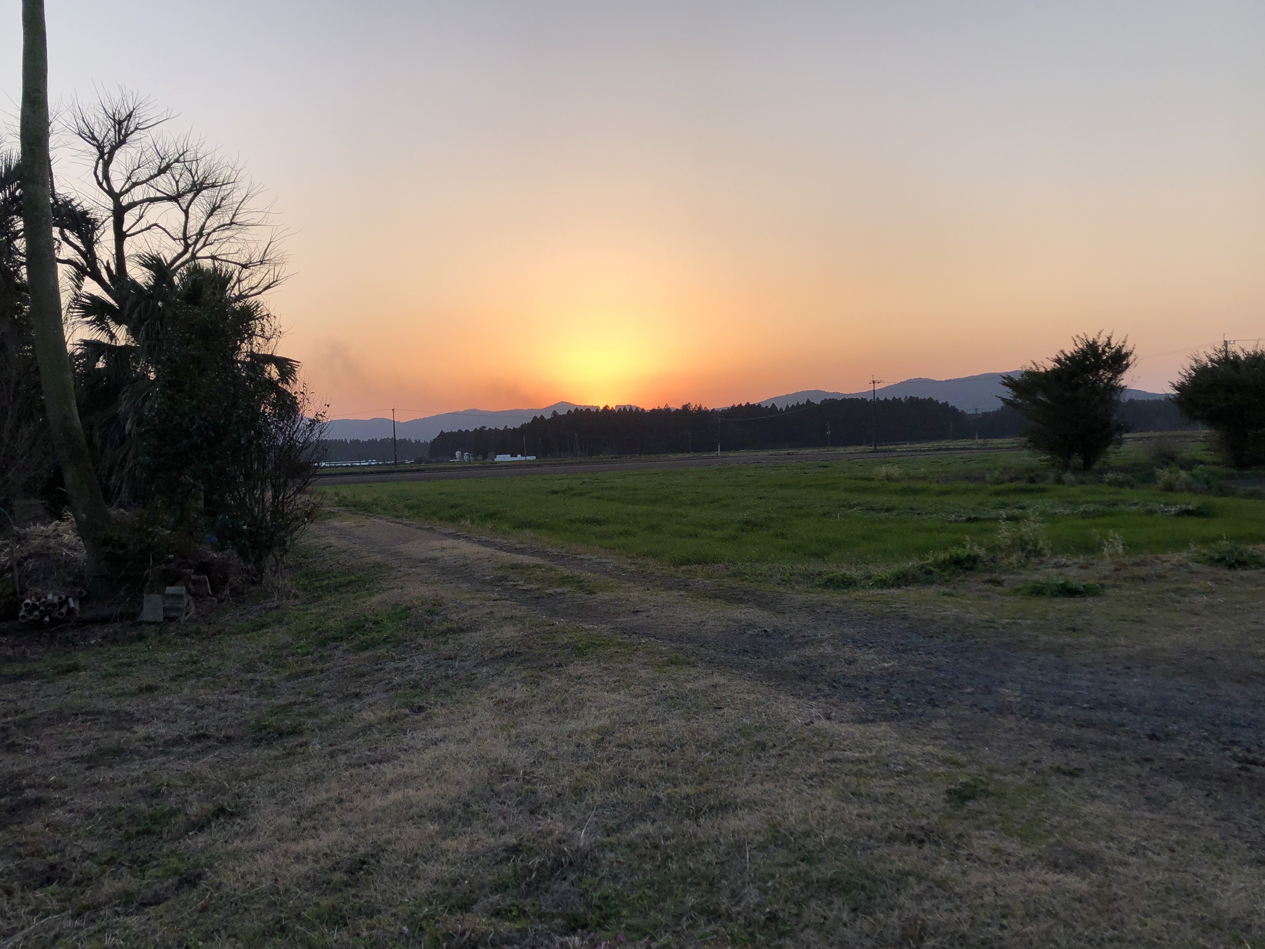 水汲みに行く際、目にした夕日がとっても綺麗だったので娘と写真を撮りました。