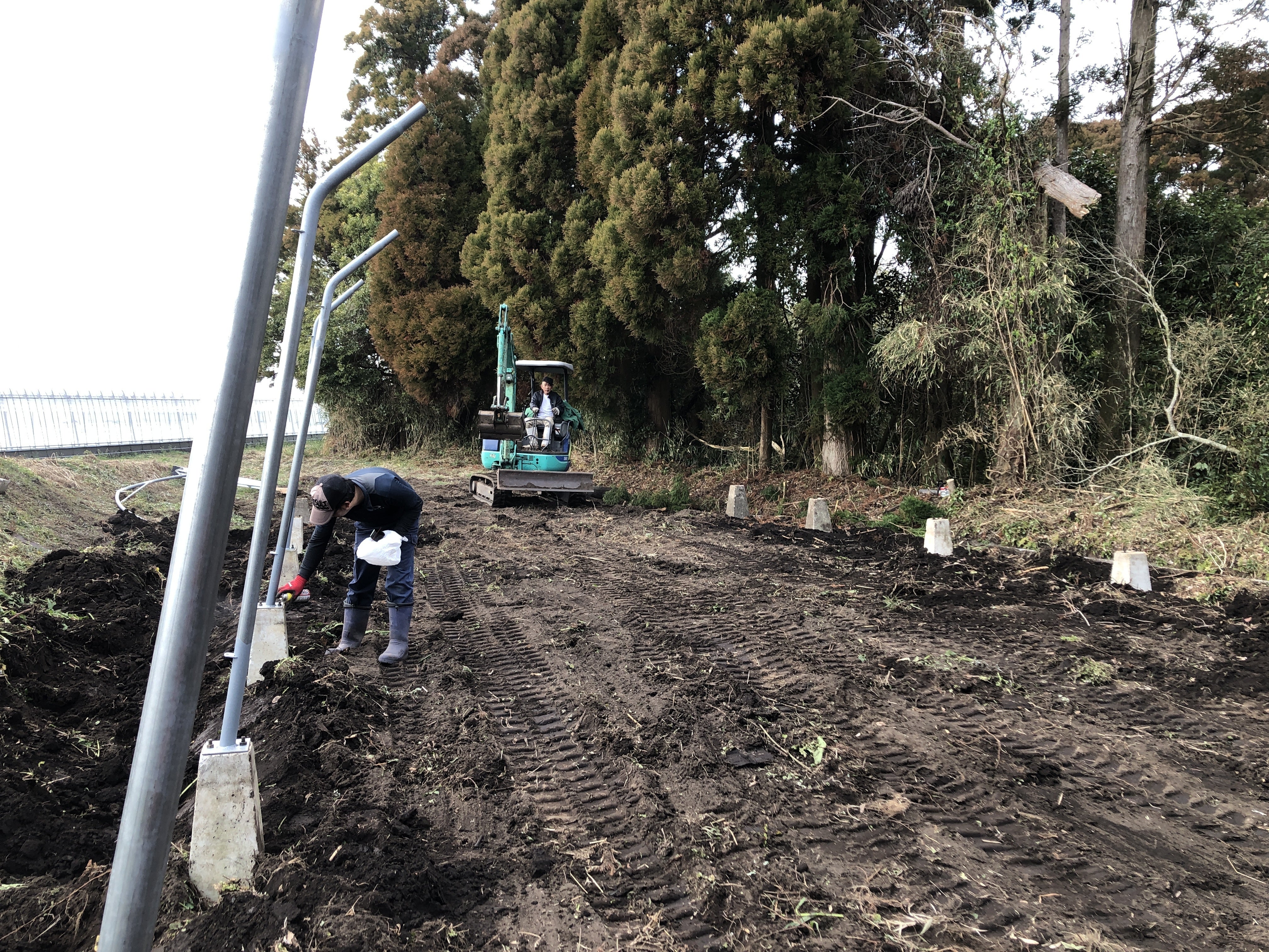 今日は地面を整地して、「つか石」をユンボで移動し埋め込む作業を大工の叔父さんと一緒にしていました。