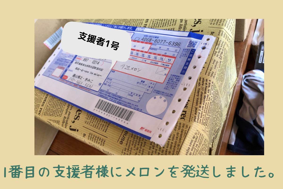 まずは、1番最初に支援してくださった方に発送しました。今後、収穫し次第お送りします。まだまだ思うようなメロンが作れていませんが、今できる最善の努力をして作りました。