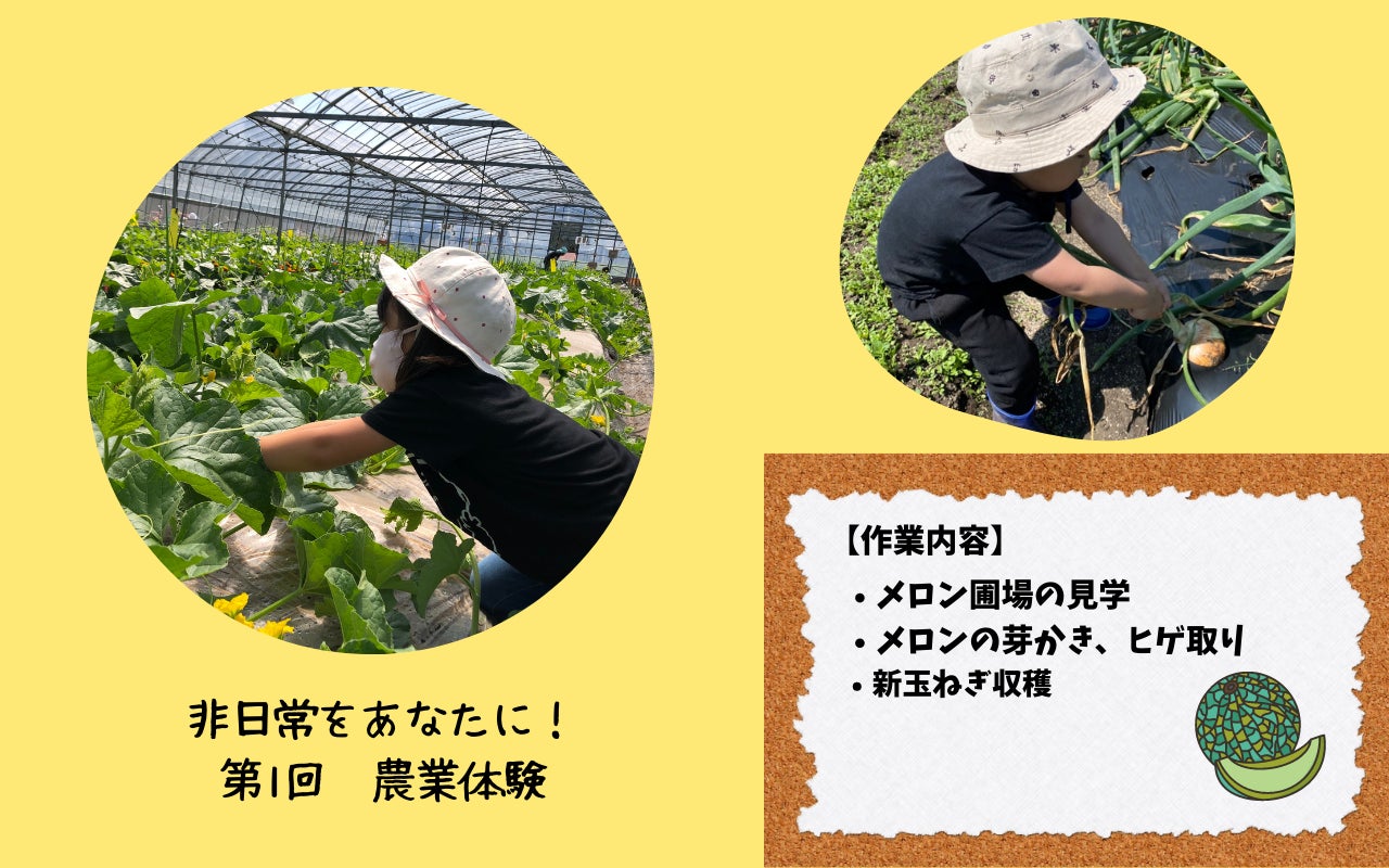 みなさん、こんばんは。今日はリターンの1つである「非日常をあなたに!農業体験」の記念すべき第1回でした。ご参加いただいたのは、2家族(小学生のご家族と、未就学児のご家族)。「小さな子でもできる農作業って何があるかな?」と考えて、メロンのヒゲ取りや新玉ねぎの収穫体験を計画しました。未就学児のお子さんに「メロンのヒゲがお隣のメロンの首を絞めちゃうから、これ取ってくれる?」と話すと…「うん! メロンがかわいそうだね」と一生懸命ヒゲを取ってくれました。その姿があまりに上手で、飲み込みが早かったため子どもにはちょっと難しいかな⁈と思っていたメロンの芽かきもお願いしてみました。すると…ちゃんと小さな芽を摘んでくれて、びっくり!何をするにも一生懸命な姿に元気をもらいました。小学生のお姉ちゃんは、「葉っぱにたくさんアブラムシが付いててね、アブラムシは葉っぱを食べてしまうの。葉っぱがないとメロンは大きくならないんだ…」って話をすると「私、てんとう虫見つけてきます!」と外で一生懸命探してくれました。そんな子どもたちの姿を見ていると、私たちのメロンが私たちだけではなく「みんなの川辺メロン」になっていってる気がしてとても嬉しかったです。私たちが一番大切にしている「顔の見える農業」。私たちの人となりや想いを共有し、「通山くんが作るメロンがイイ!」と言ってもらえるようなメロン農家になりたいです。今日はとっても幸せな農業体験でした。ご参加いただき本当にありがとうございました。まだまだ、農業体験は受付中。ご希望の日にちをメッセージくださいね。