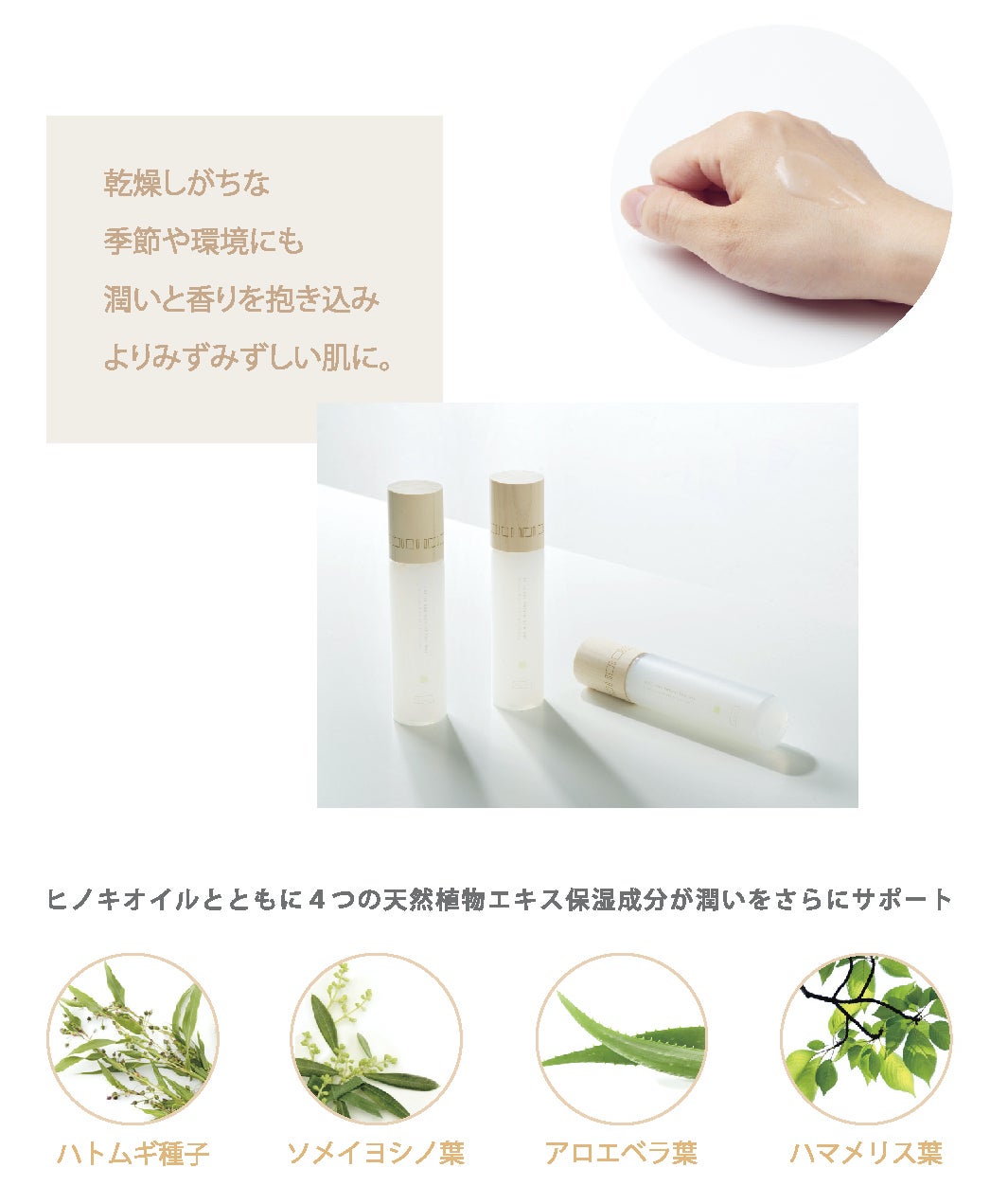 今を生きる人たちの願いから、ヒノキオイルを含むナチュラルコスメとして、3つの魅力を実現をしました。