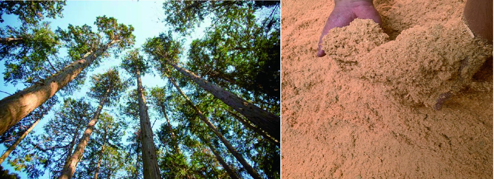 樹齢50 年を超え10m 以上の高さまで育ち伐採期をむかえたヒノキ。オイルは、実はこの大きな成木1本からわずかにグラス一杯程度の量しか採取できない、非常に貴重なものです。
