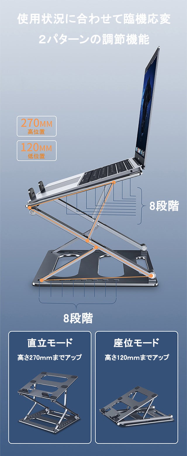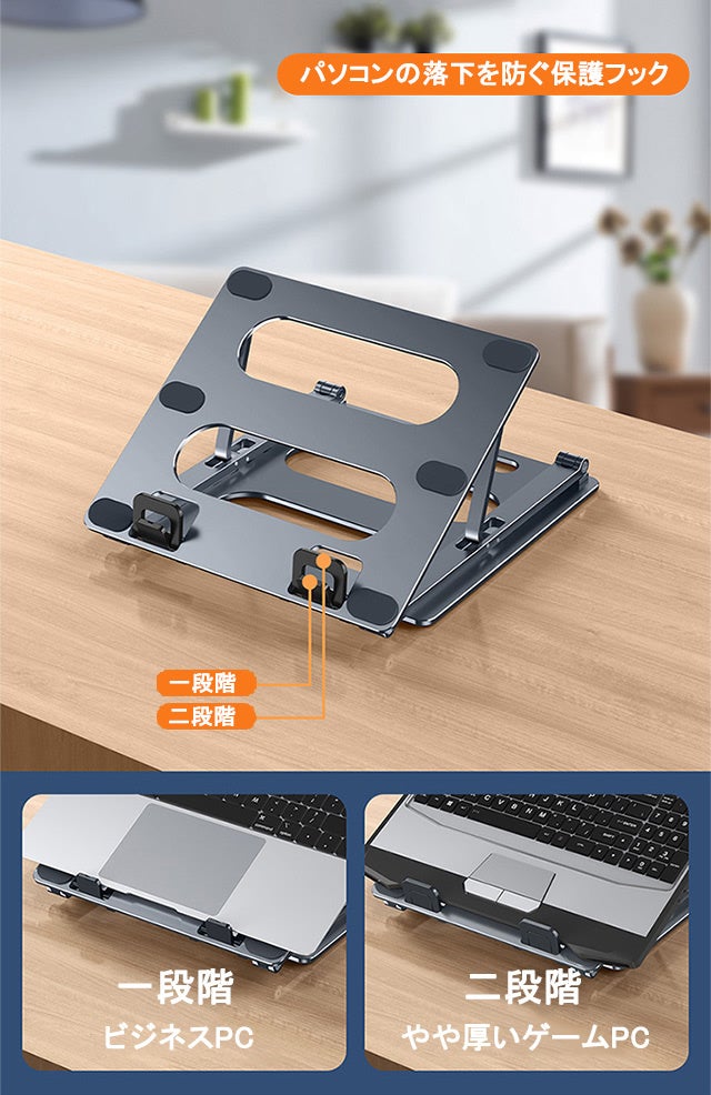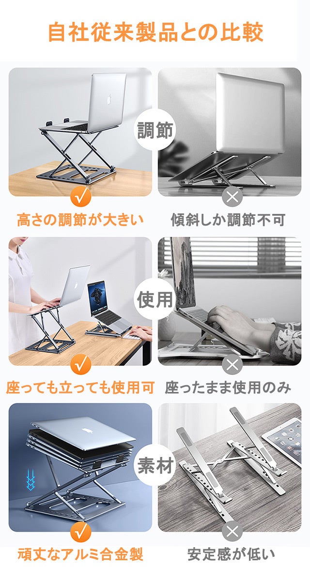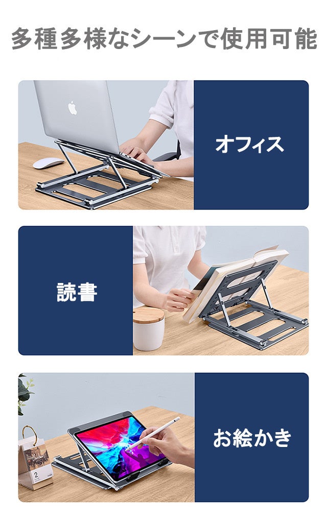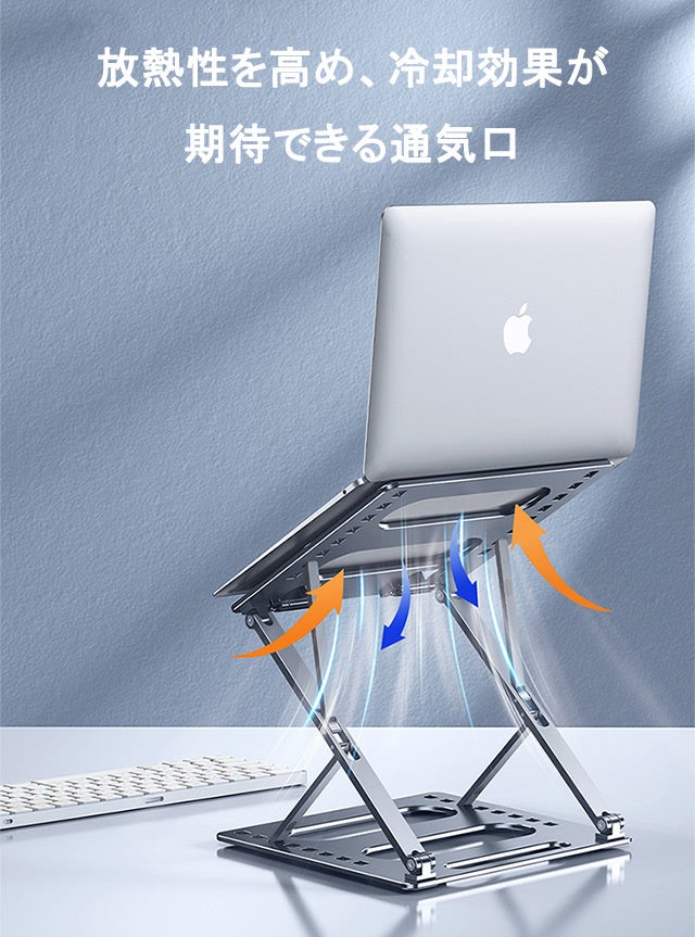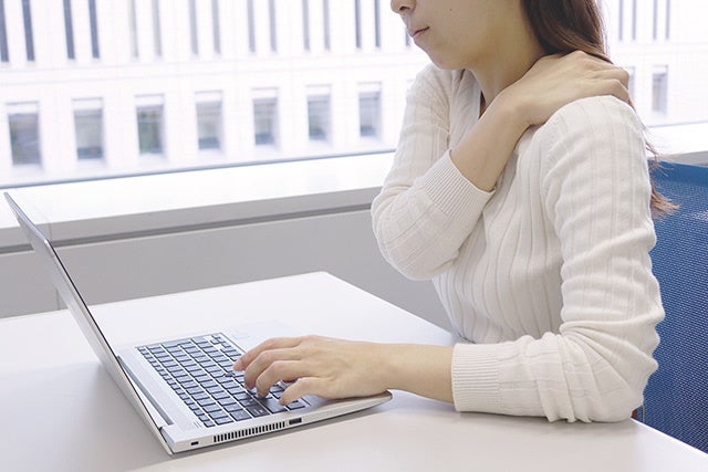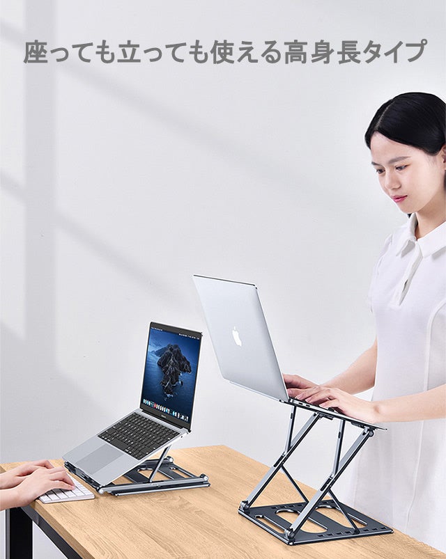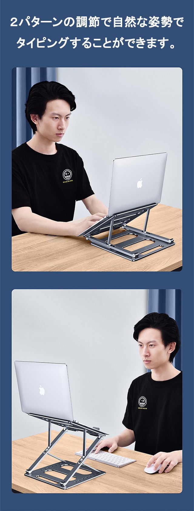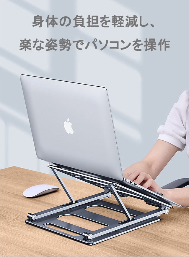 長時間ノートPCを直接デスクに置いて作業を行うと、姿勢が悪くなり首や肩などによくありません。正しい姿勢を維持することで、肩や腰の負担を軽減し、作業の効率化にも効果があります。