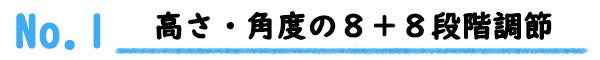 8+8段階の高さ・角度調節機能で目線を上げることができ、