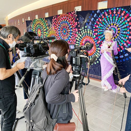 取材を受ける90歳のムツさん