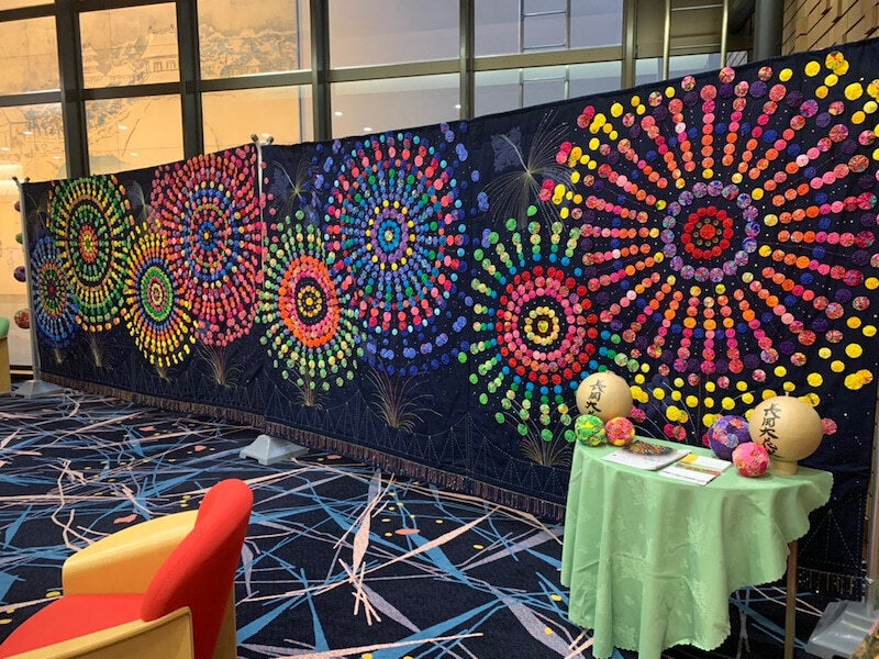 この試みは、2021年7月に完成し、7月31日~8月3日まで長岡市役所に飾られました。たくさんの方々から「長岡花火が中止になってしまったけれど、この作品を見て、涙が出た」「元気をもらえた」などのお声がけを頂き、姉妹都市友好の為に作られた作品ではありますが、このコロナ禍においては、それ以上の意味があり、この作品には皆さんを元気にするパワーがあると感じました。