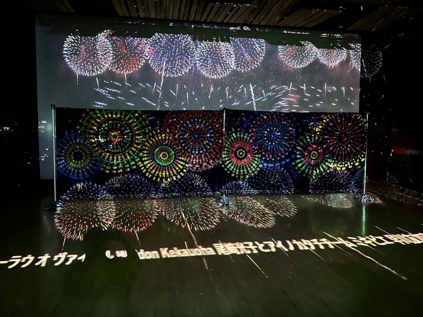 2022/01/16 14:13いよいよ作業スタート!1月14、15日と、アオーレ長岡交流ホールA をお借りして、実際に長岡花火キルトを飾りいよいよプロジェクションマッピングの制作がはじまりました!個人的にはプロジェクションディレクターの岸本さんとは2回目のコラボです。私が主宰する「ハワイアンキルトサロンMANA」の展示会の際にご一緒したのが縁で「この巨大な作品に光をあてられるのは岸本さんしかいない!」と思い、今回の件をお願いしました。アオーレ長岡交流ホールは人気があり、なかなか予約が取れず、今回のプレリハーサルの後に通し確認できるのは、2月18日の上映前日になります。なので、今回の作業はいつも以上に真剣モードでした。試行錯誤の繰り返しまず、縦2メートル横8メートルの巨大な長岡花火キルトを飾る作業からスタートです。なんと、物干し台が登場!!経費削減につき、いろいろ考えているのです・・・。岸本さんも、まさかの物干しで戸惑い気味です・・・。無事、飾れましたが・・・マッピングを当てるときに、作品が揺れたりゆがんだりしてはダメなので、実際に当ててみないと分からないのです。確認作業中の岸本さん。どうかな・・・大丈夫かな。動画の全貌は、まだお見せできないので雰囲気だけですが、いかがでしょう?雰囲気伝わりますか? これから当日まで編集作業が何十回も繰り返されます。当日は正面だけではなく床、壁、天井にもプロジェクター10台を使って演出します。まるで花火の真下にいるような感動を体感いただけます!楽しみにしていてくださいね。 もっと見るMahalo nui loa!!