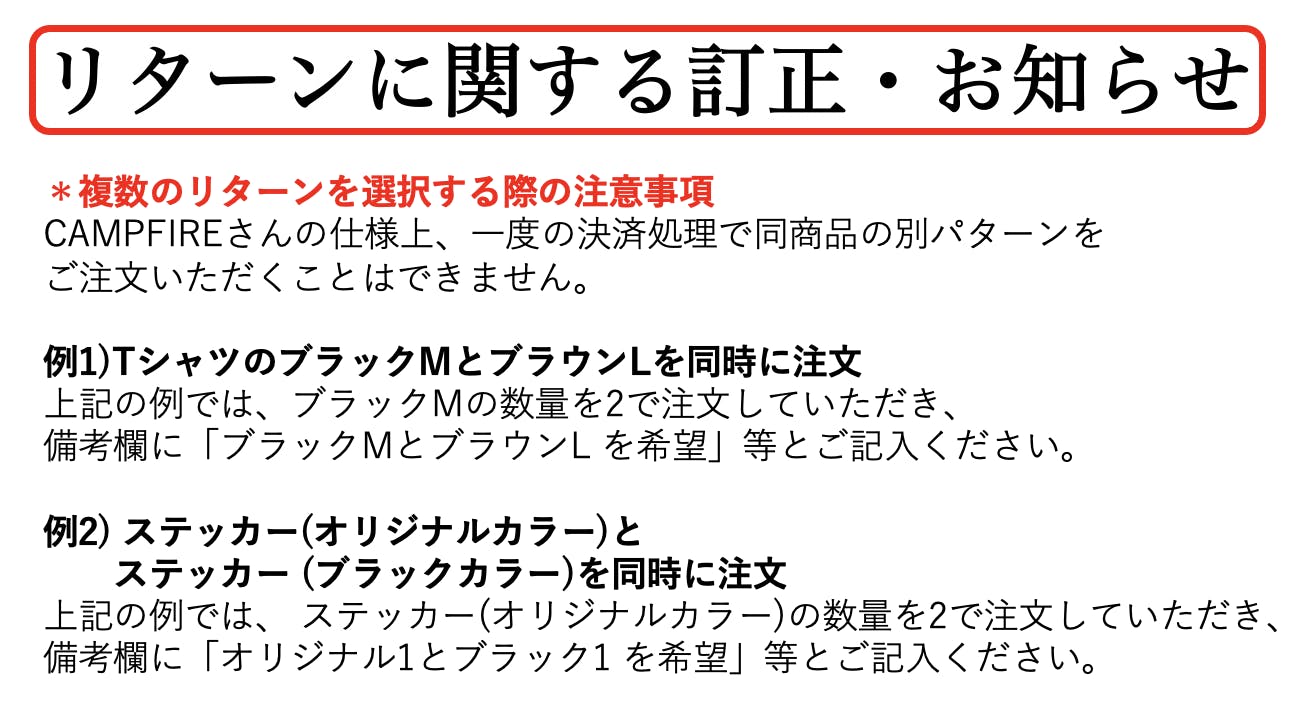 2021/12/31 00:19先日、新規プロジェクトを上げさせて頂いたCAMPAGEです。早速、訂正があります。申し訳ございません。リターンに関して、ミスが発覚いたしました。同商品を複数選択される際は、ご注意よろしくお願い致します。《instagram》CAMPAGEの活動を確認できます。ぜひ、フォローよろしくお願い致します。https://www.instagram.com/campage_2021/ もっと見る