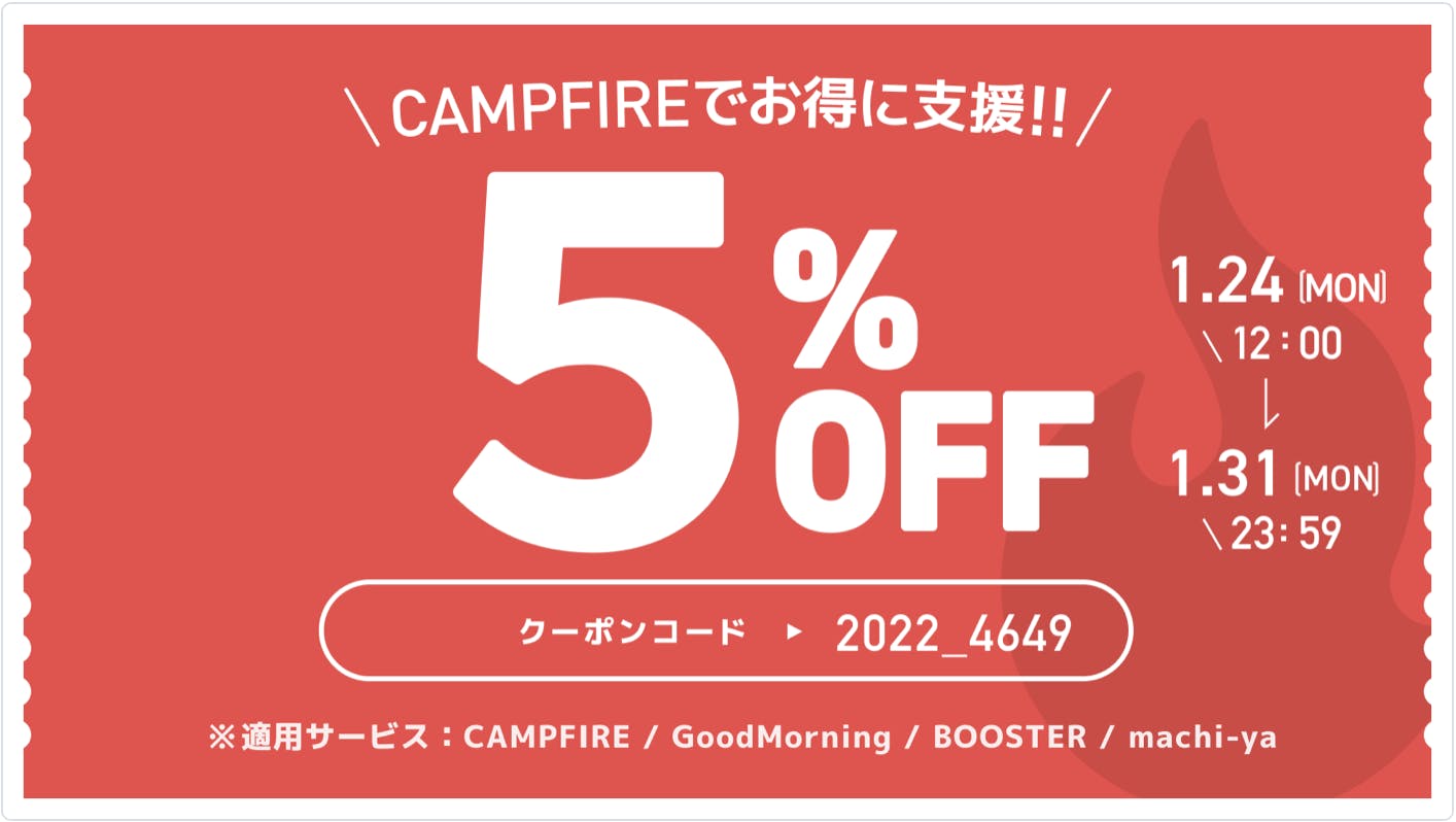 (手数料10%, CM公開記念!はじめてのクラウドファンディング応援キャンペーン)