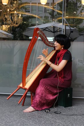 マッサージで癒されてハープの演奏。とてもまったりくつろげる空間になりそうです。