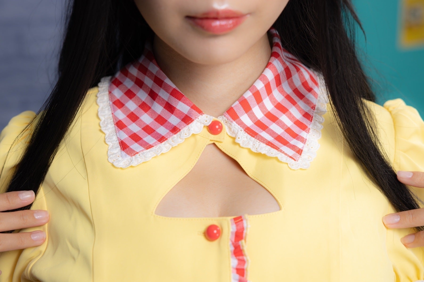 ▼可愛さがぎゅっと詰め込まれた、レース縁のギンガムチェック襟▼