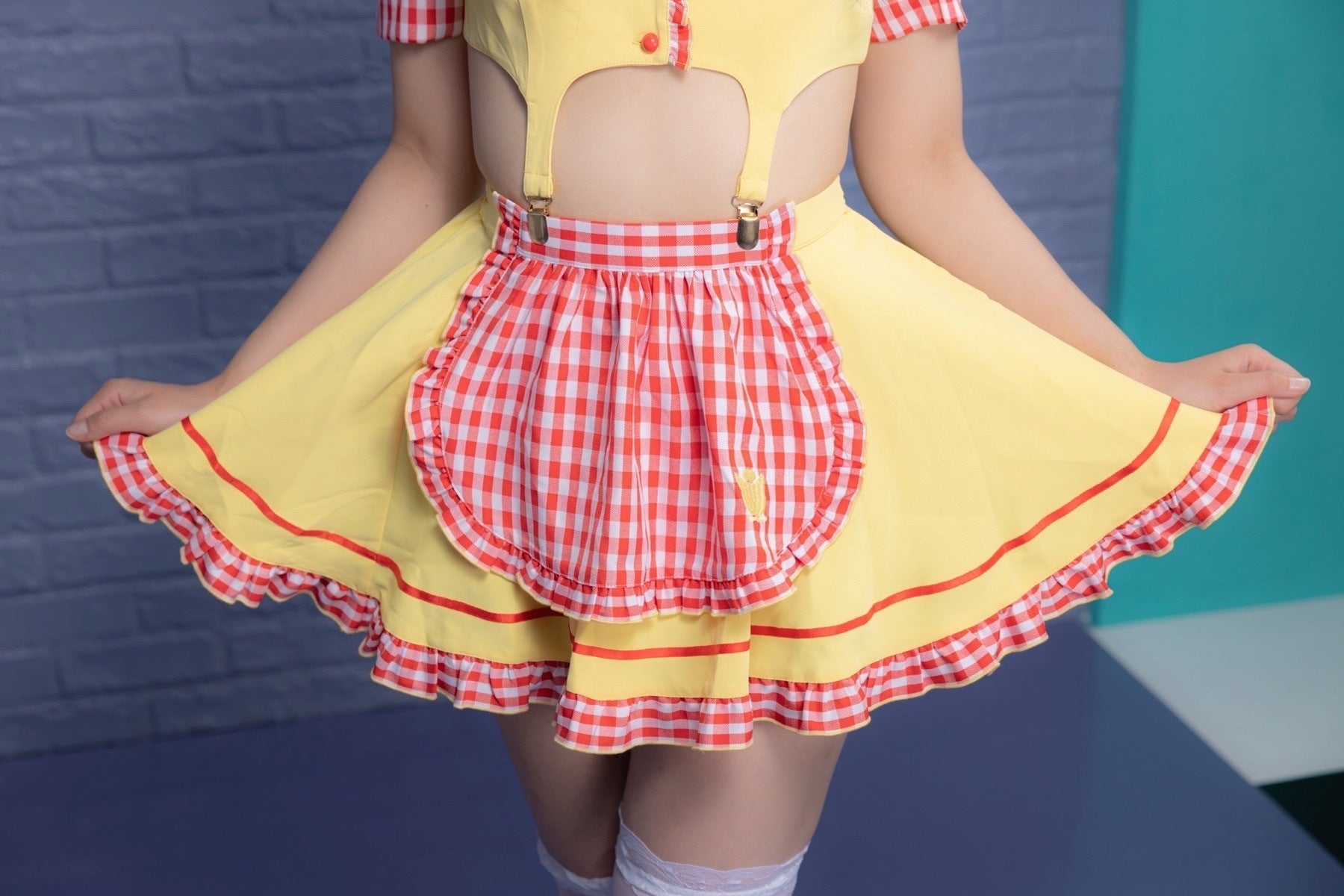 ▼ ギンガムチェックの見え方に拘ったエプロンとフリル ▼