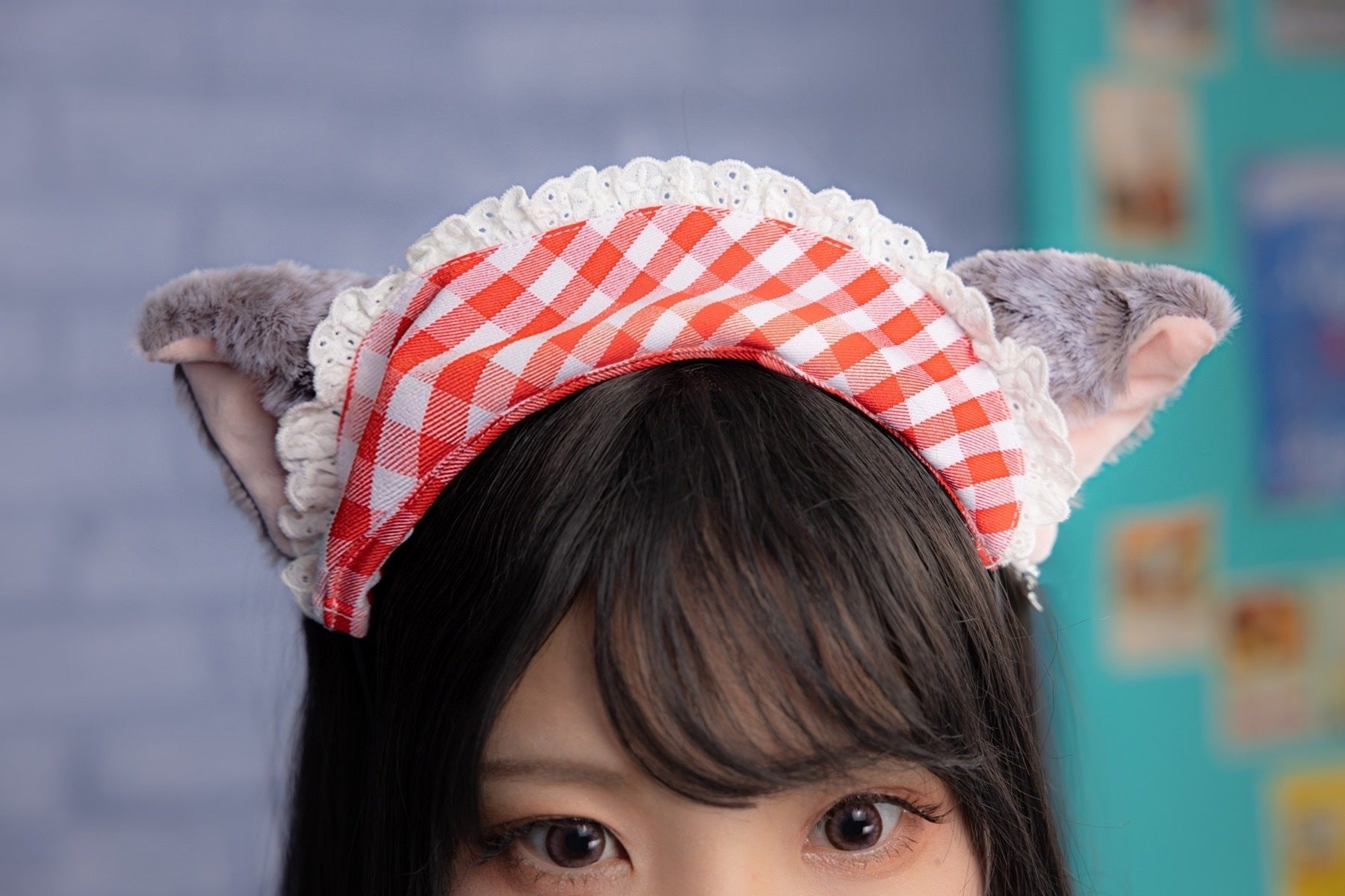 ギンガムチェックにレースをあしらったカチューシャは大きすぎないよう大きさや形にもこだわりました。猫耳部分はきちんと固定&耳がへこたれずにピンと立つように小さいクリップを2つ付けました。