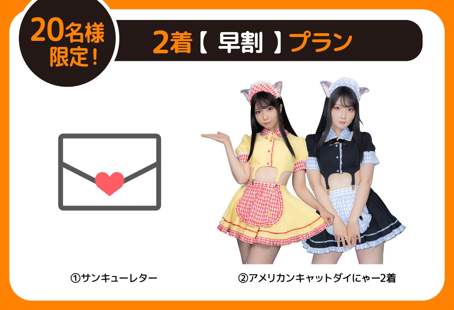 「アメリカンキャットダイにゃー」のお得な早割プランや2着プランの他、今回着用モデルを務めてくださったイズ氏さんのご協力のもと、ファン向けのスペシャルプランもご用意いたしました!