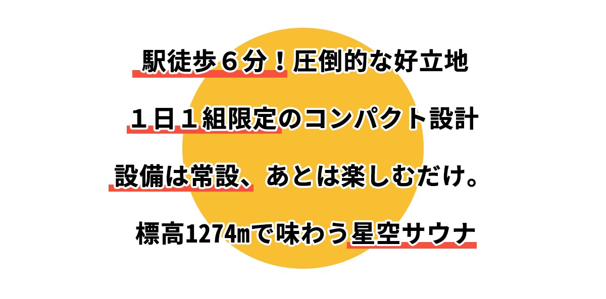 JRで2番目に高い駅(1274m)だからこそ観れる星空とサウナで至高のととのいを気心の知れた仲間と味わってください。
