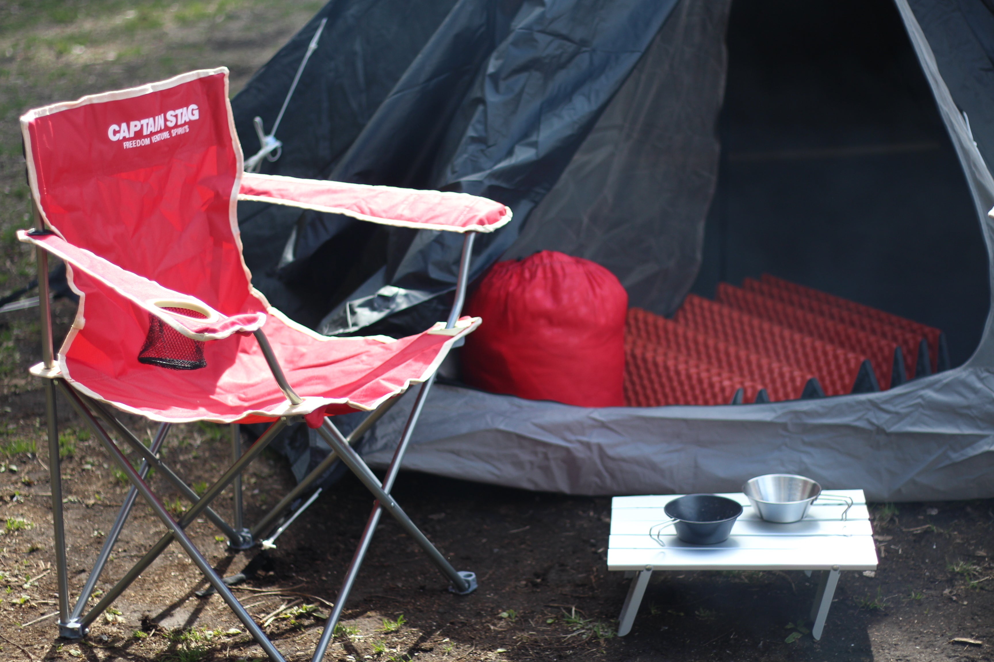 テント、タープ、寝袋、マット、焚き火台、イス、テーブル、ランタン、まな板、食器、カセットコンロetc.