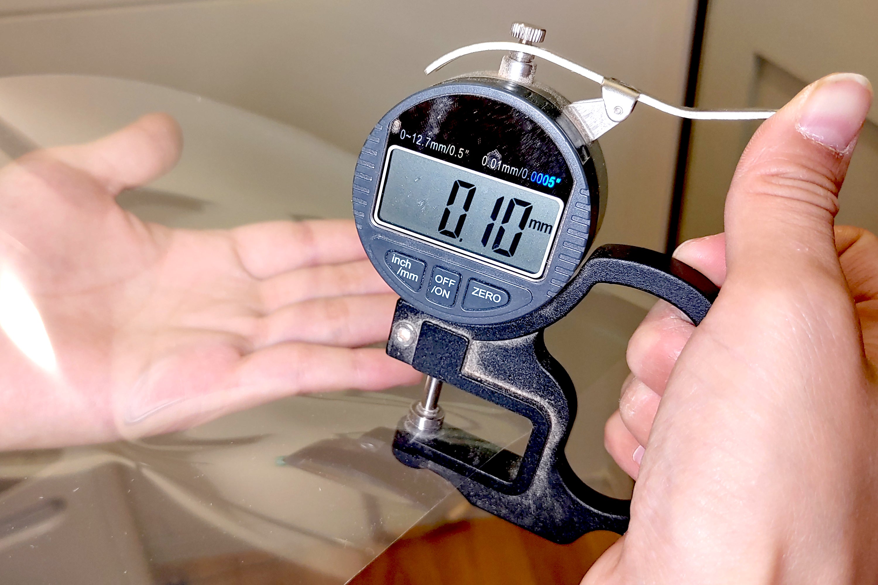 通常の粘着保護フィルムの膜の厚さは75μmが一般的ですが、