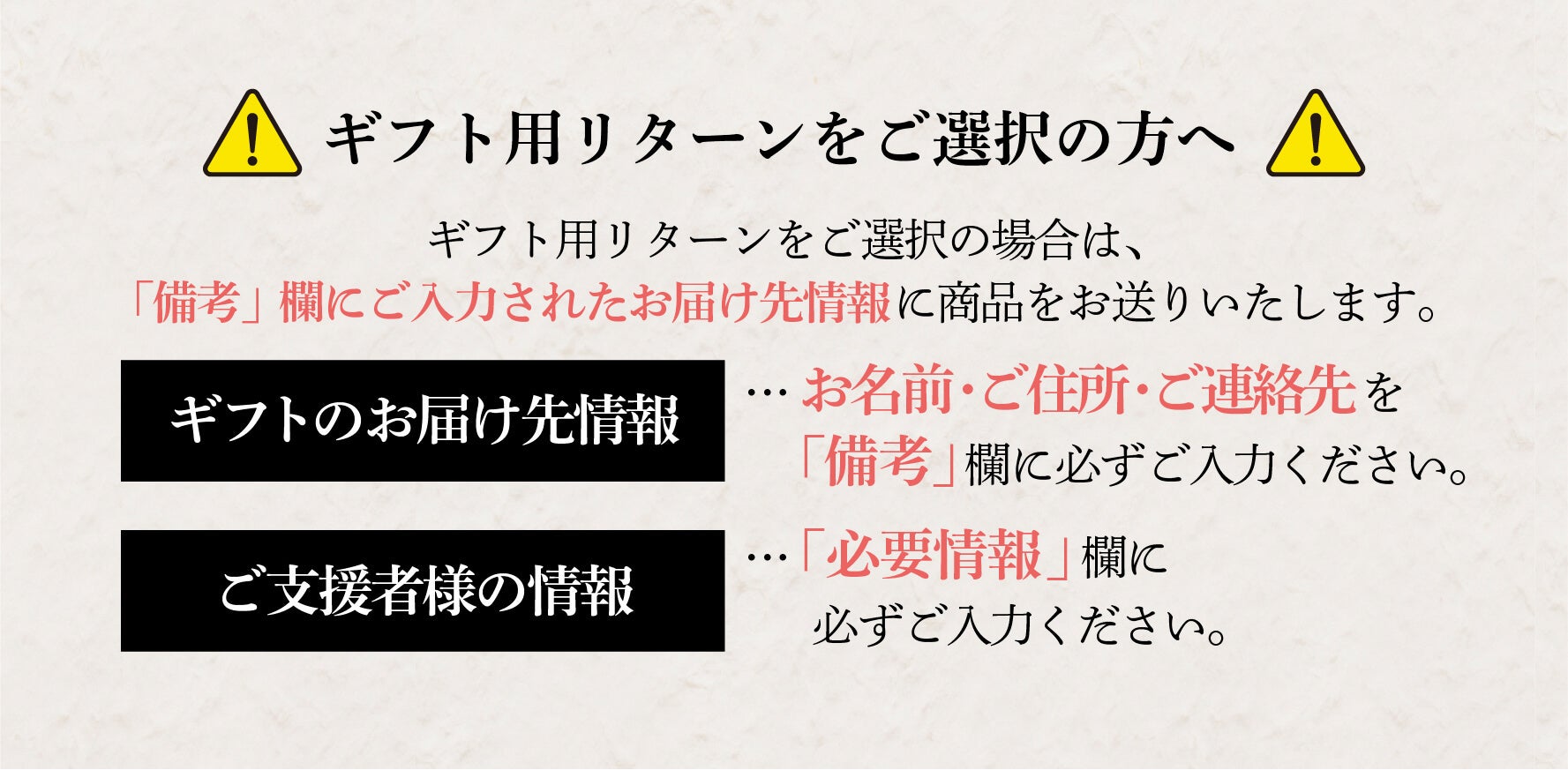ご希望の方は、「ギフト用」と記載のリターンをご選択くださいませ。