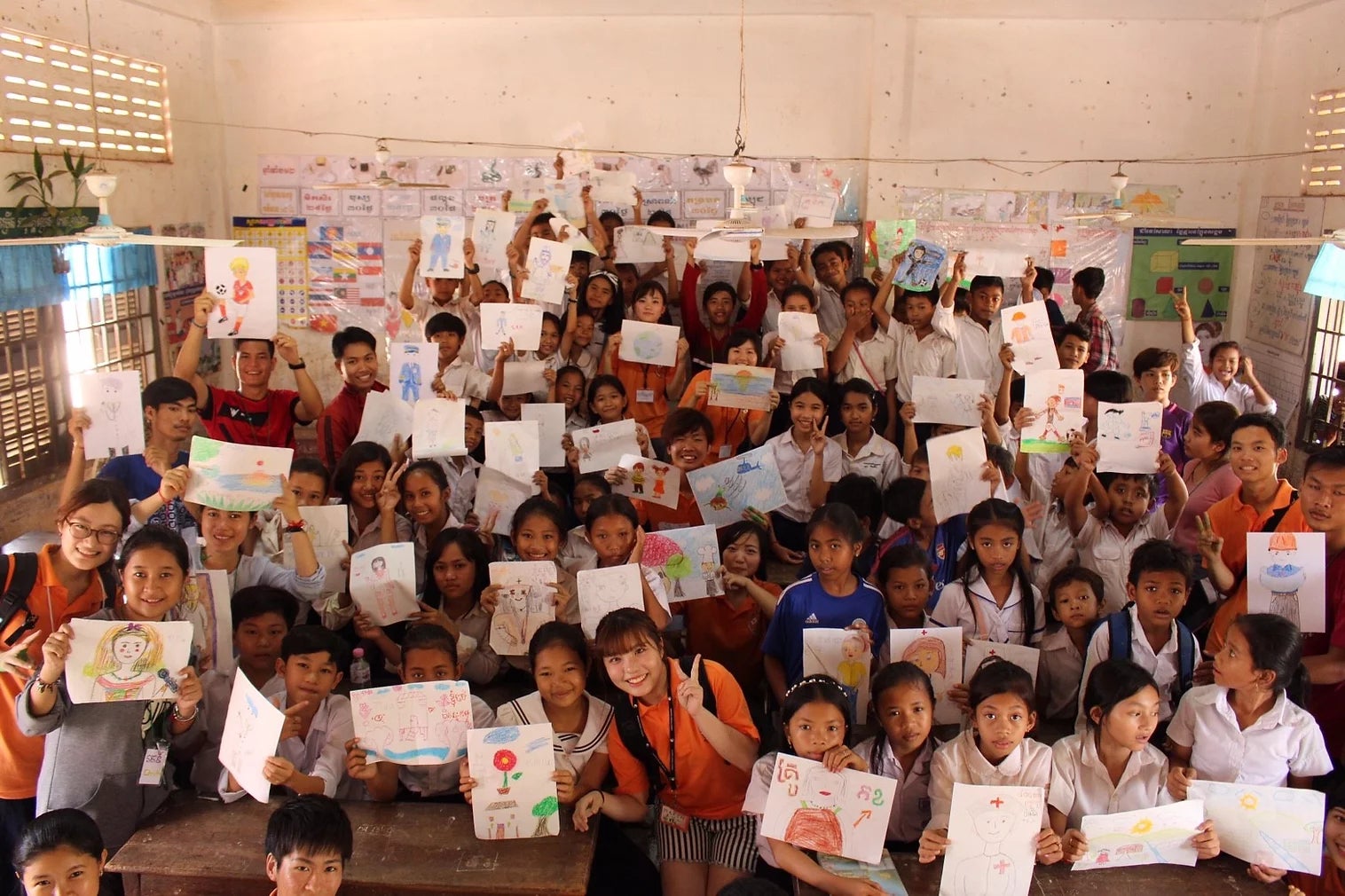 ⇨日本とカンボジアの子どもたちで絵手紙を交換し、文化交流をします!