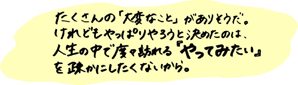 おつまみ農園を始める理由は、”やってみたいから”。