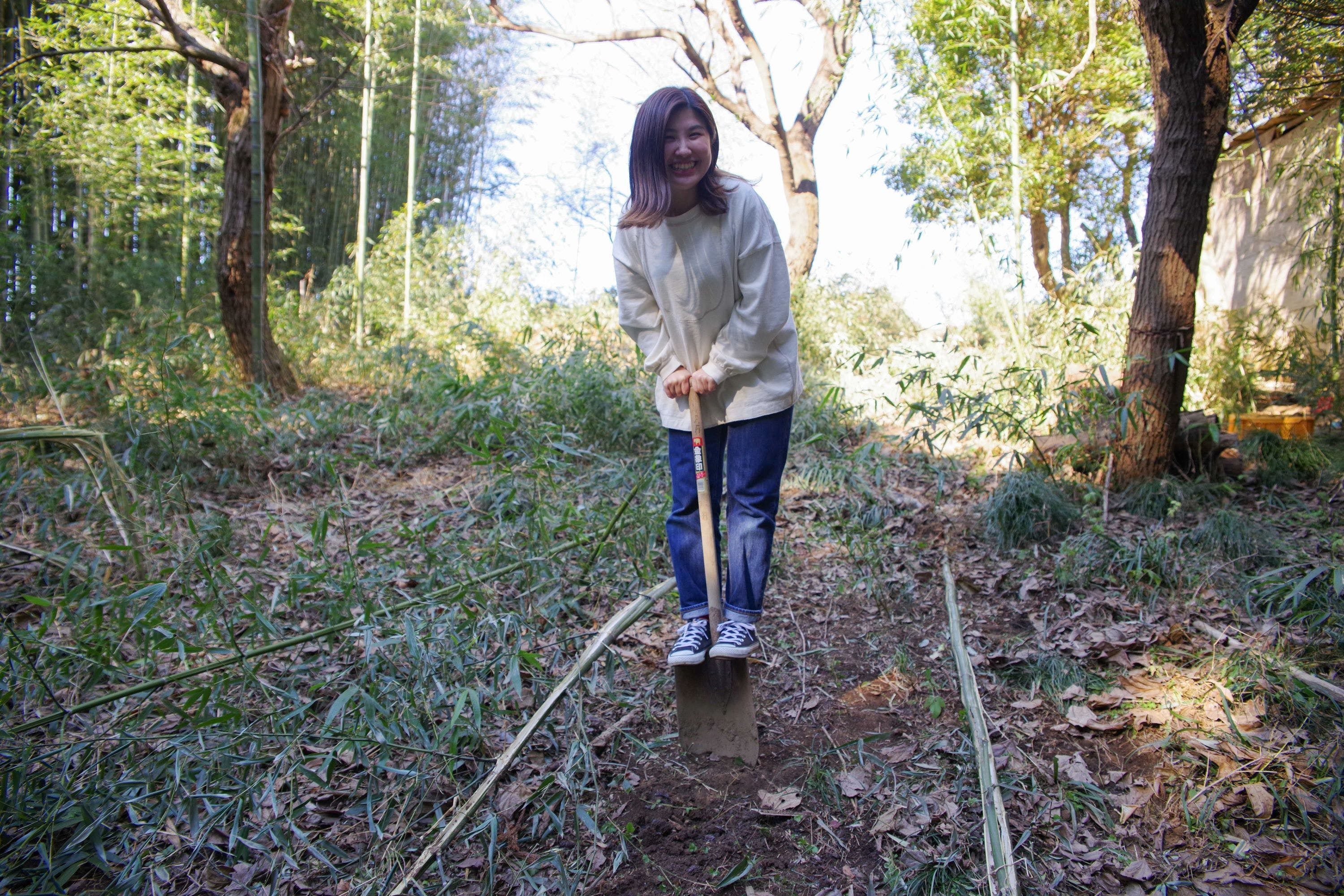 強靭な竹の根は土の中で連なっていて、かなり手ごわいものだったので、バックホーを使って土ごと掘り起こして伐根することになりました。これまたありがたくも、近所の方が持っていたバックホーを貸してくれることになり、いざ土を掘り起こそうとすると、