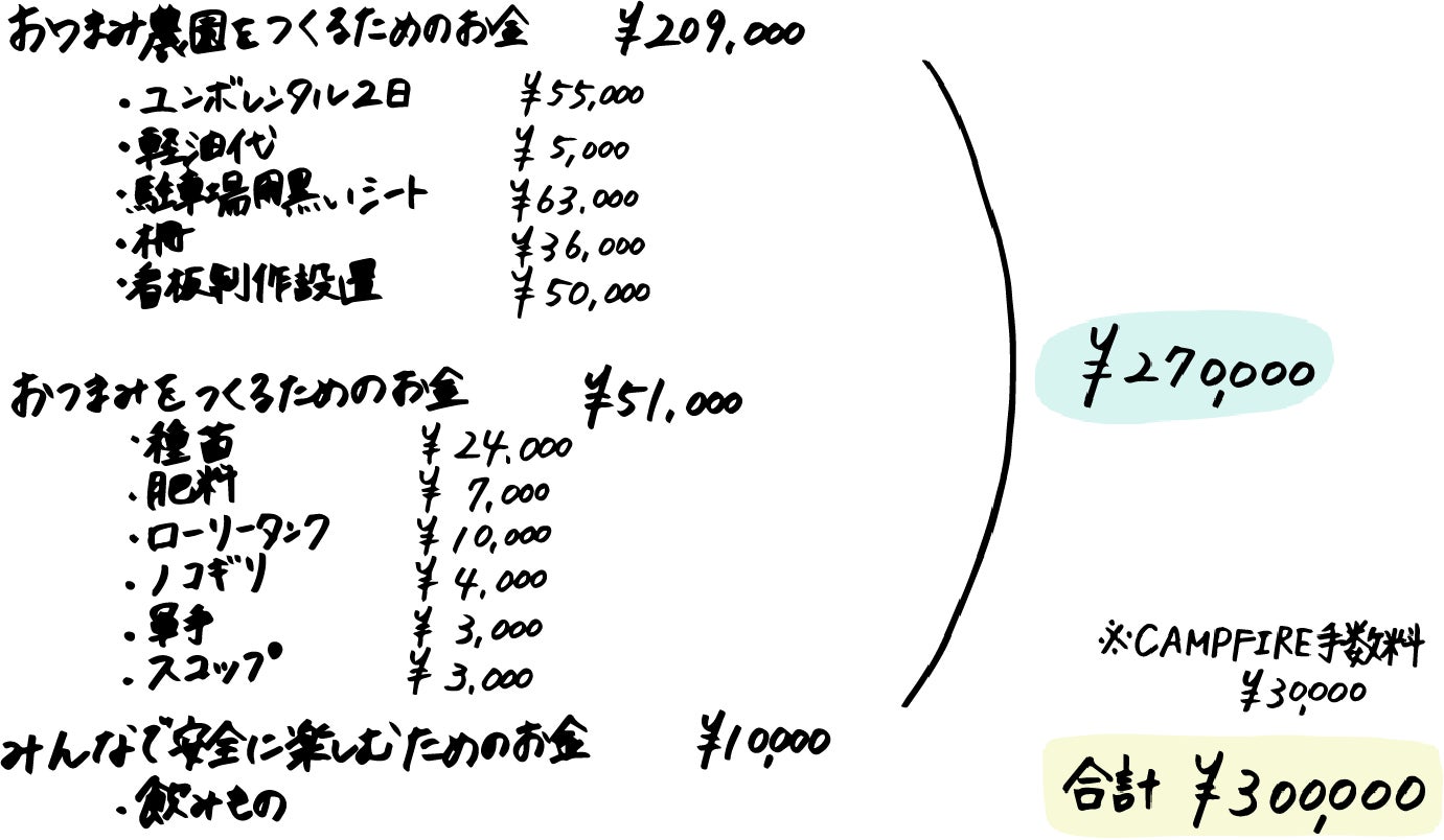 畑の開墾の為の初期費用や駐車場の作成代金、また、第一回目の種まきの際に植える作物の種や苗木の購入に充てさせて頂きます。