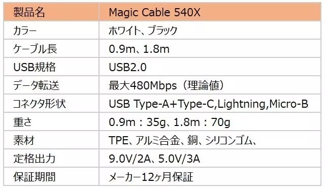 『Magic Cable 540X』は『特許取得』の独創的な発想とデザインにより、充電ケーブルが絡まってしまう面倒さを解消します。