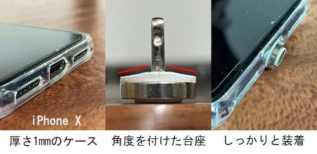 ※ご注意:あくまでも検証用です。組み合わせるスマホの重量次第では外れる可能性もございます。