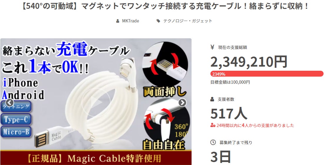 『Magic Cable 540X』の充電ケーブルは、端子を様々な機器に挿しておき、充電ケーブルに『カチッ』とマグネット接続すれば、すぐに充電できてとても便利です!