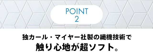 カール・マイヤー社の高度な経編技術の生地は適度な張りがありながら柔らかく、感触がとてもソフト。