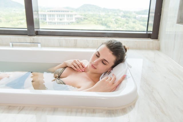 ふわふわのマットが浴槽に接する首、背中、お尻の圧迫感を減らし、極上の憩いのひと時を味わえます。